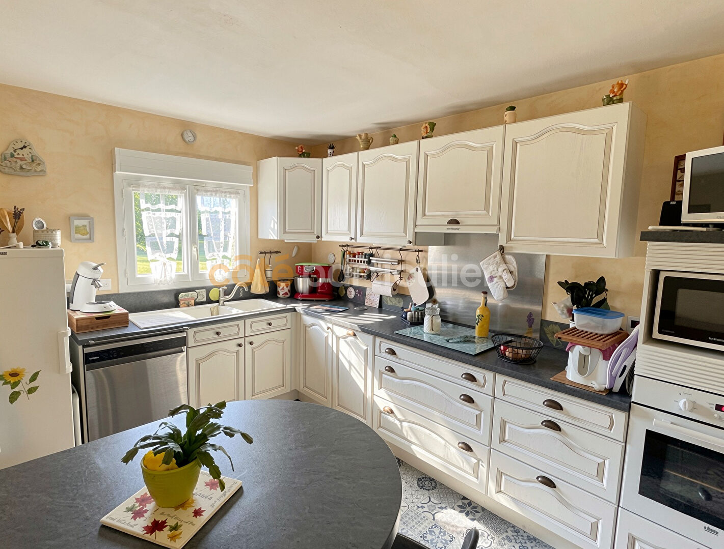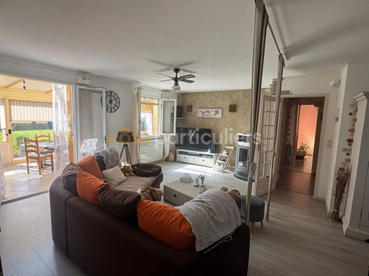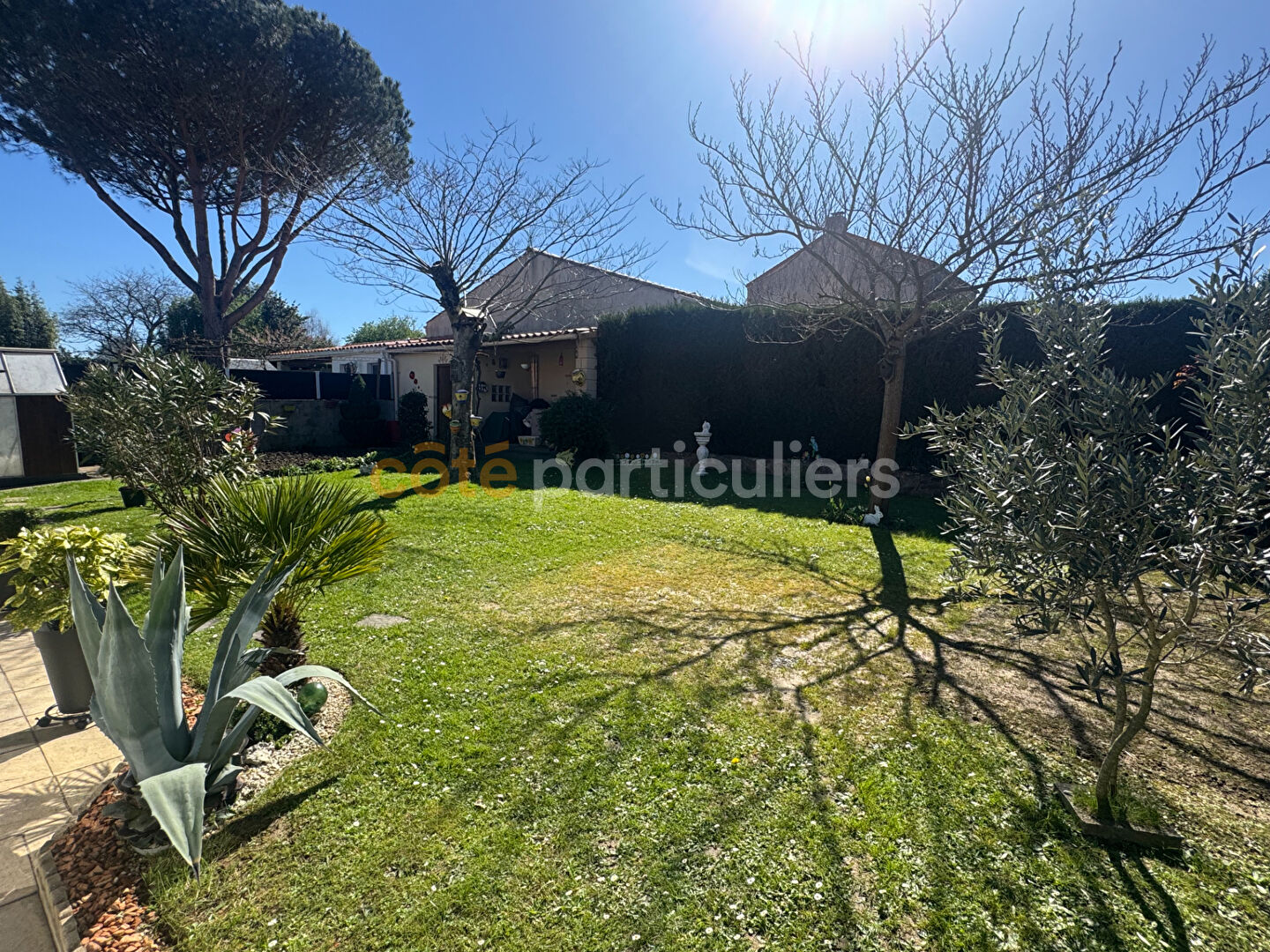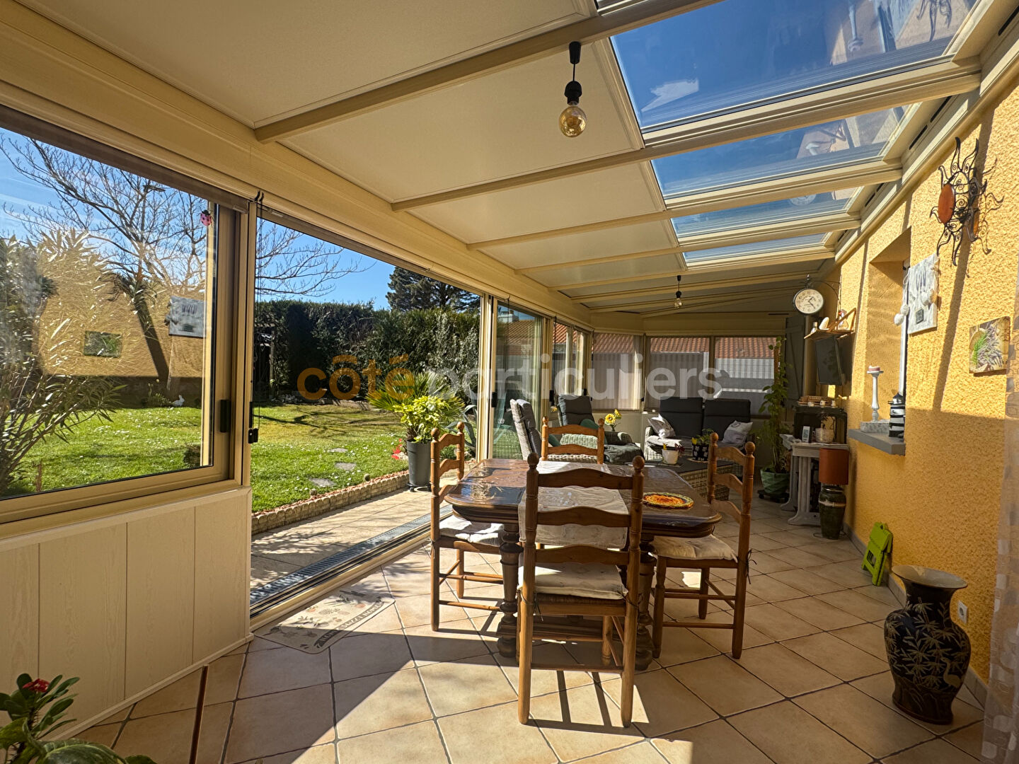 COTÉ PARTICULIERS -- Située en plein coeur de La Montagne, dans un environnement calme et verdoyant, cette agréable maison de plain-pied de 116 m² habitables offre un cadre de vie idéal à proximité immédiate de toutes les commodités. Vous bénéficiez d'un emplacement recherché, à quelques minutes à pied des commerces, des écoles et des transports permettant de rejoindre rapidement le tramway ligne 3. Dès l'entrée, vous découvrez une belle pièce de vie lumineuse comprenant une cuisine aménagée et équipée ouverte sur un salon-séjour chaleureux, agrémenté d'un poêle à pellets apportant confort et économies d'énergie. Dans le prolongement, une véranda de 26 m² signée Concept Alu, équipée d'une climatisation réversible, constitue un véritable espace de vie supplémentaire avec un accès direct au jardin. L'espace nuit, bien distinct, se compose de trois chambres avec rangements, d'une salle d'eau, de WC indépendants ainsi que de nombreux espaces de stockage. Un cellier, une cave et un garage traversant de 18 m² avec porte motorisée et grenier complètent l'ensemble. A l'extérieur, vous profiterez d'un jardin entièrement clos, arboré et exposé plein sud, sans vis-à-vis, idéal pour profiter du calme et des beaux jours en toute intimité. Prix de vente : 318 000 euros FAI, dont 10 000 euros d'honoraires d'agence à la charge de l'acquéreur, soit un prix net vendeur de 308 000 euros. Côté Particuliers (RCS Nantes 948 350 889). Les informations sur les risques auxquels ce bien est exposé sont disponibles sur le site Géorisques. (3.25 % honoraires TTC à la charge de l'acquéreur.)