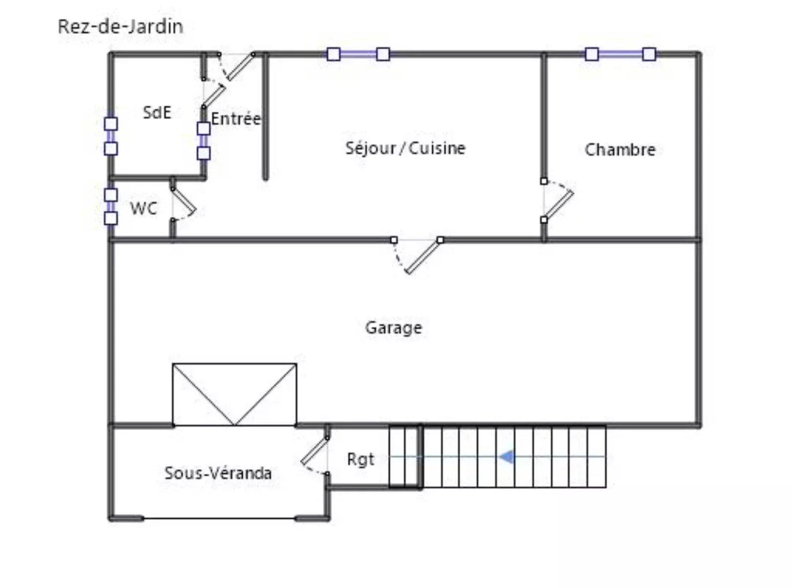 Al piano terra, un bilocale composto da un ingresso, un soggiorno con cucina, una camera da letto, un bagno con doccia e un WC separato, oltre a un ampio garage di oltre 40 m² con zona lavanderia e officina.