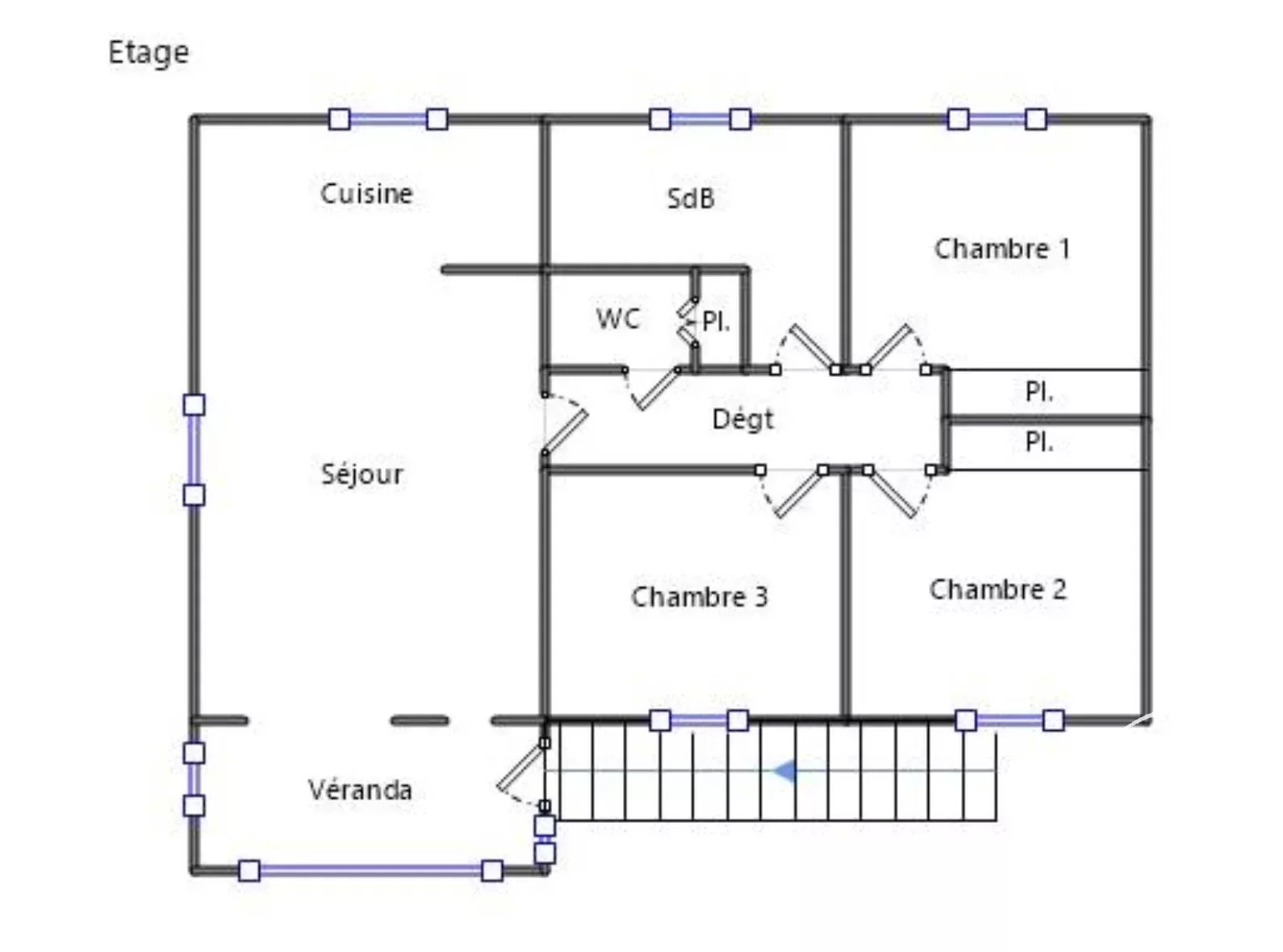 Al piano superiore, un appartamento di 4 locali composto da ingresso, soggiorno con cucina, tre camere da letto, bagno e toilette separata.