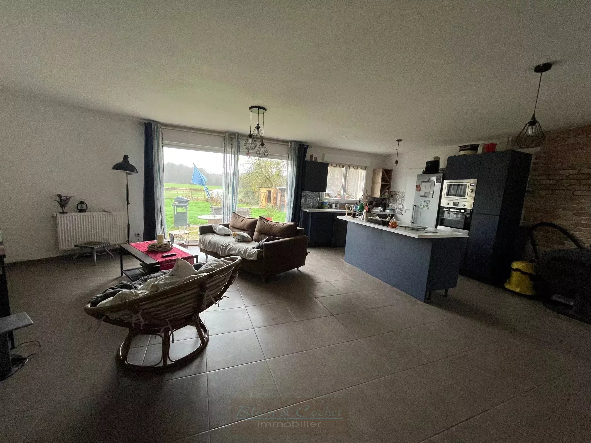 Le séjour spacieux s'ouvre sur une cuisine fonctionnelle, idéale pour partager des moments conviviaux. Le jardin attenant est entièrement clôturé, garantissant sécurité et intimité pour vos moments de détente.