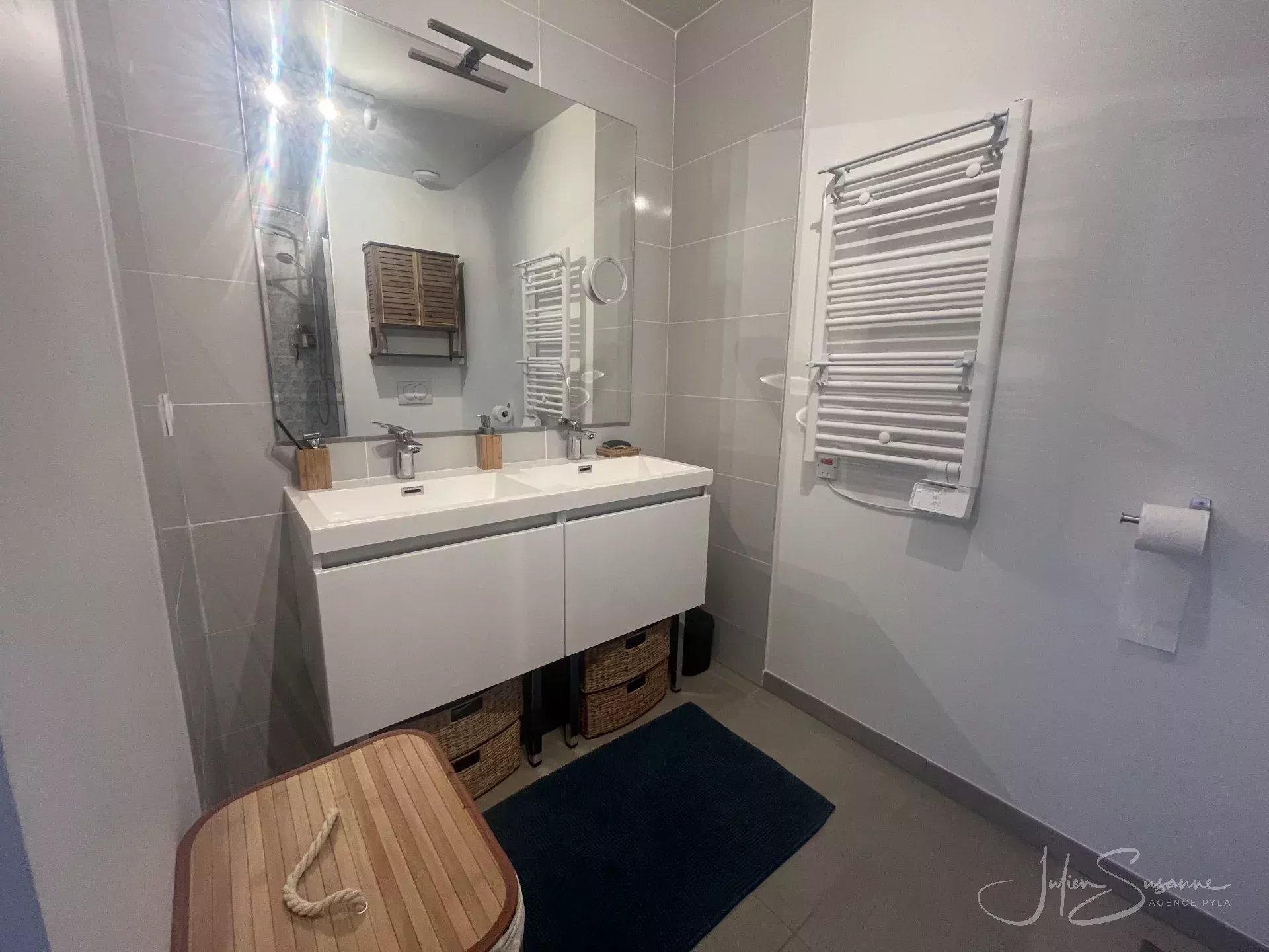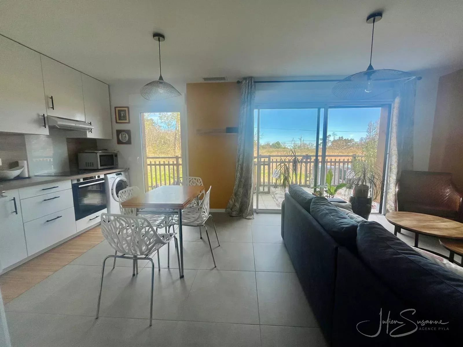 Dans un environnement paisible au cœur de la Hume, à proximité immédiate des commerces, de la gare, des plages, et du parc de la Chêneraie, ces résidences neuves, construites en 2024, offrent un cadre de vie exceptionnel. L'appartement est vendu entièrement meublé, dispose d'une terrasse, et d'un jardin privatif sans vis-à-vis, avec place de parking incluse. Pensé pour offrir tout le confort moderne, il se compose d'une entrée, d'une chambre avec placard, d'une cuisine équipée ouverte sur un séjour lumineux, ainsi que d'une salle d'eau avec douche italienne et WC. Véritable havre de paix, ce logement conjugue calme et praticité, dans un cadre idyllique sur le bassin. Contacter Alex G