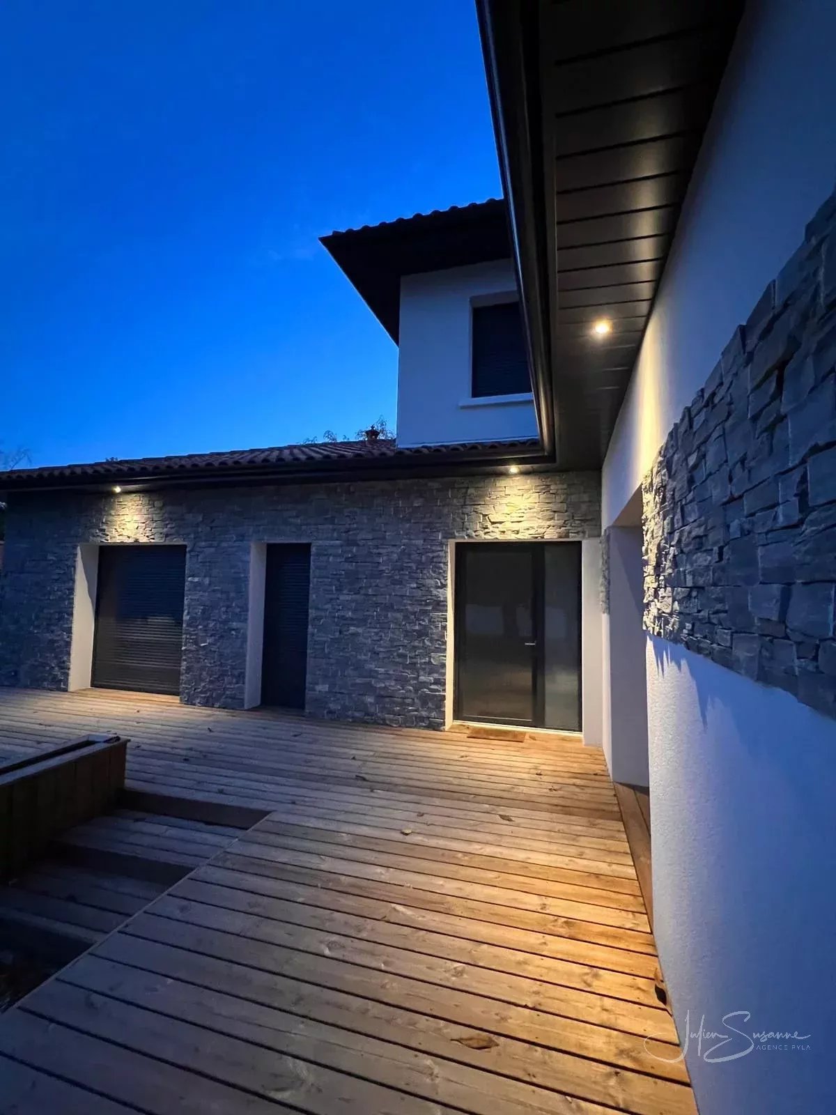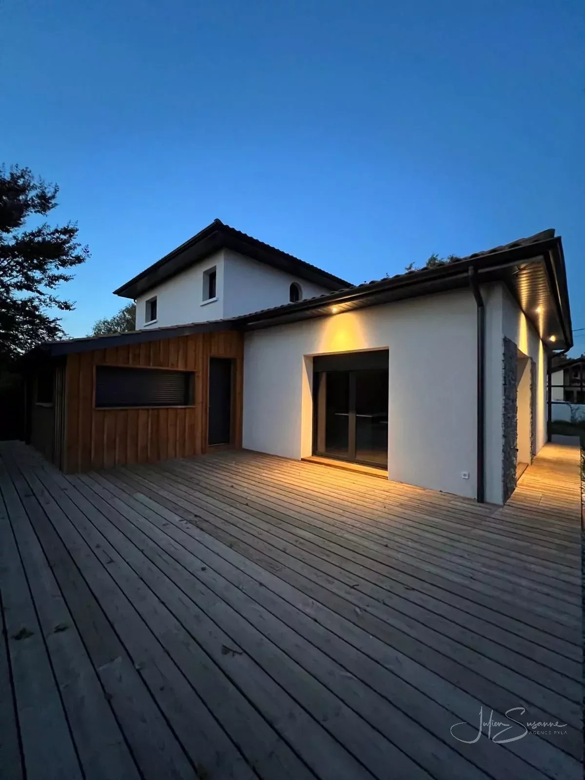 Elégante villa neuve de 4 chambres en lisière du golf vous offre un véritable havre de paix familial. À deux pas des commodités, elle allie modernité, confort et tranquillité absolue. 4 chambres spacieuses et lumineuses, dont une suite parentale - Grand salon avec accès direct sur la terrasse - Cuisine équipée avec des matériaux haut de gamme - Jardin paysagé magnifiquement entretenu, idéal pour les moments de détente - Piscine privée pour se rafraîchir lors des belles journées ensoleillées - Boulodrome pour des parties entre amis ou en famille - Garage spacieux pour plusieurs véhicules Proximité des commodités et la sérénité d'un environnement naturel. Idéal pour les amateurs de golf et ceux en quête de tranquillité, elle représente un véritable coup de cœur. N'attendez plus pour visiter cette propriété d'exception et profiter d'un style de vie raffiné et paisible. Contacter l'agence du Pyla au 0675531105