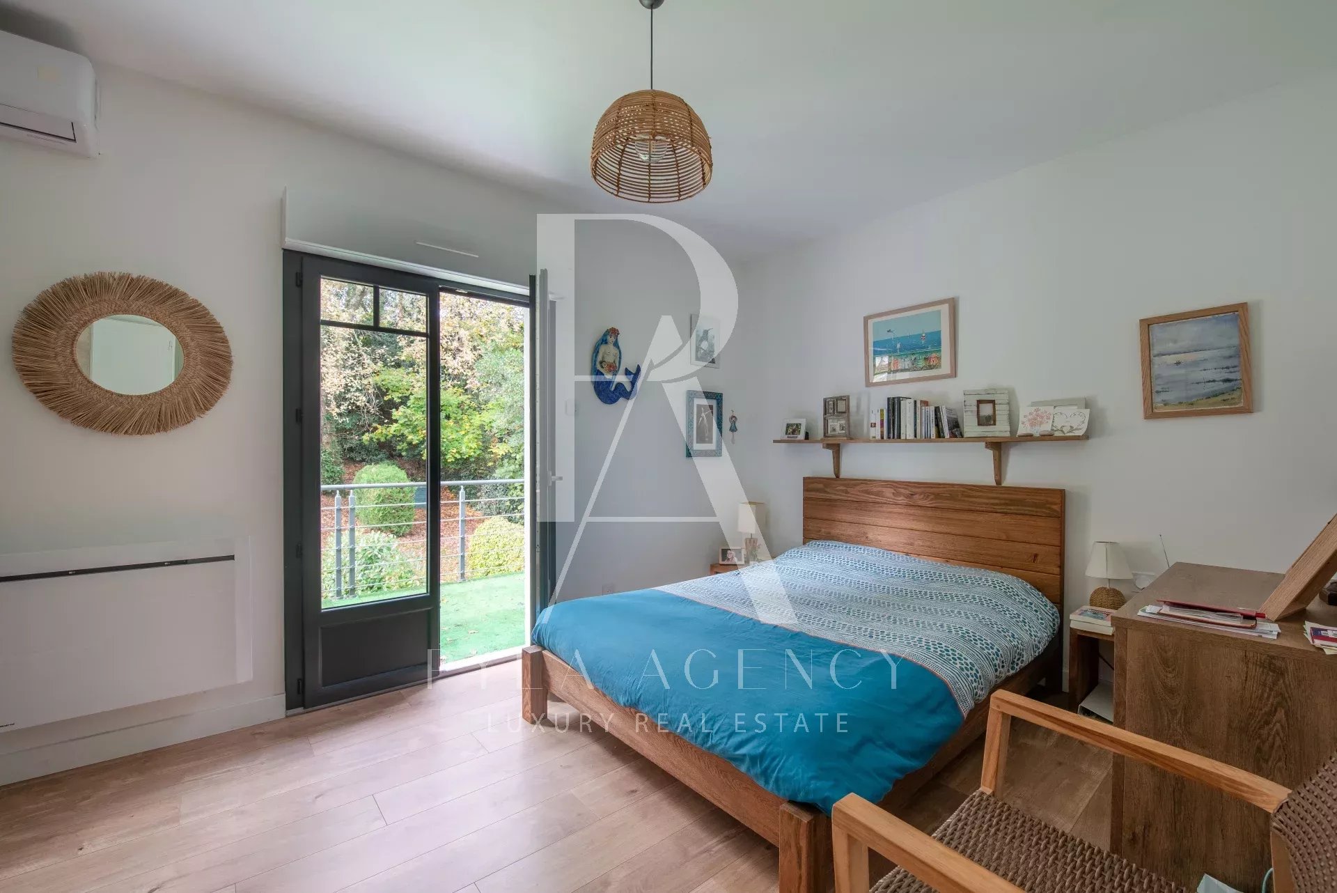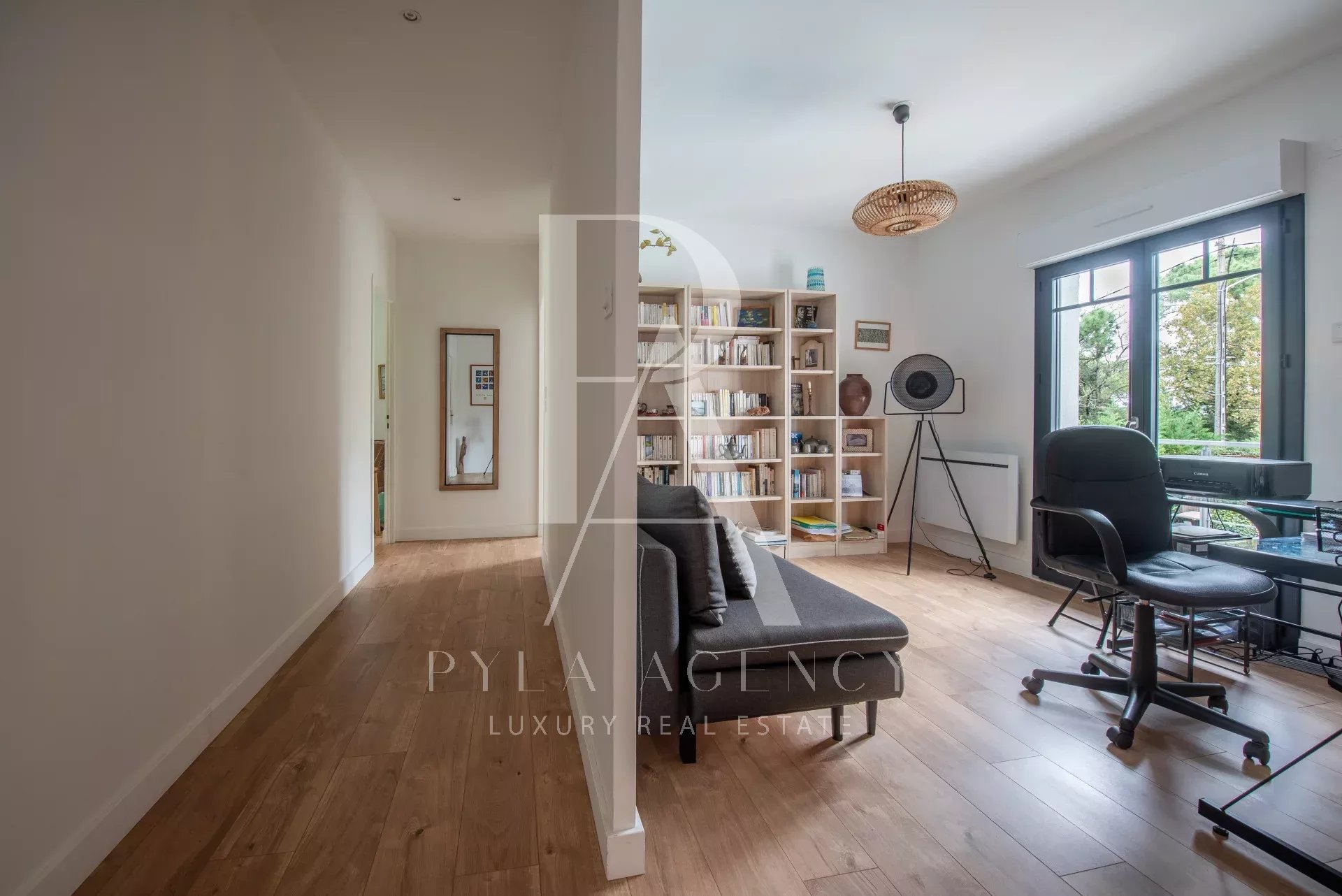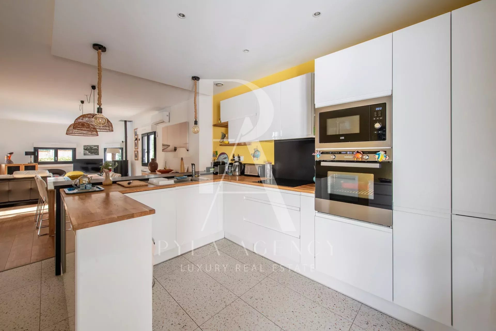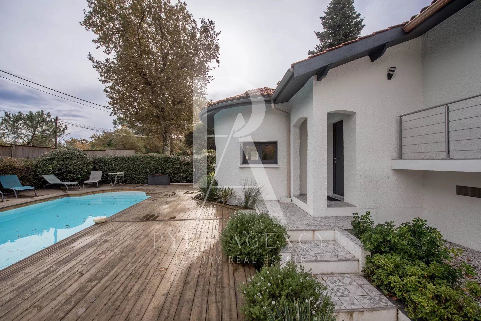 Idéalement située dans un environnement recherché du Pyla, cette magnifique villa allie charme, confort et modernité. Rénovée avec goût en 2023, elle offre de belles prestations et un excellent diagnostic énergétique. Son vaste séjour baigné de lumière s’ouvre sur une cuisine contemporaine entièrement équipée, prolongeant naturellement la convivialité vers une large terrasse tournée vers le jardin. La villa dispose de cinq chambres, dont deux suites avec salle d’eau et toilettes privatifs, ainsi qu’un bureau et deux toilettes indépendants. Le confort est assuré toute l’année grâce à la climatisation réversible et au poêle à bois du salon. Sur un terrain arboré de 1 100 m², vous profiterez d’un véritable espace de détente : piscine au sel, boulodrome, et un espace plancha pour des moments chaleureux en plein air. Un cabanon et une dépendance complètent ce bien pour entreposer vos vélos et servir de rangement. Proche des commerces, du golf et des plages, cette propriété bénéficie d’un excellent rendement locatif saisonnier. Venez la visiter sans tarder