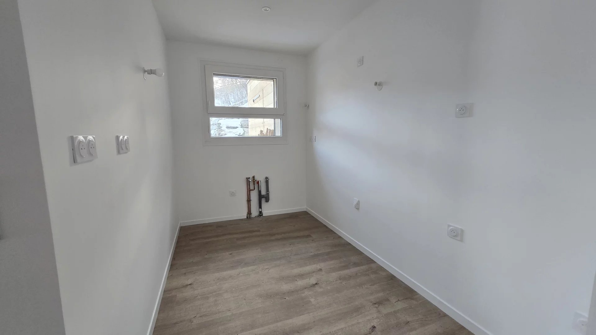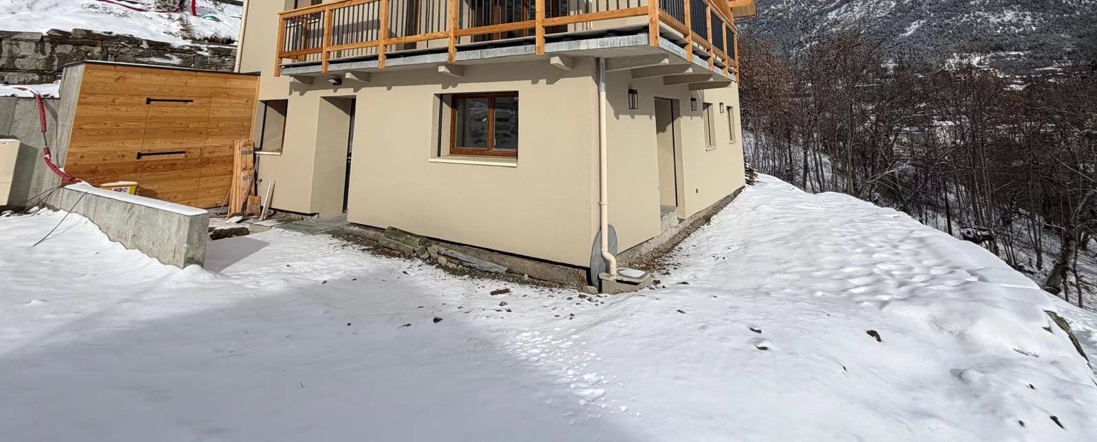 T4 rénové à NEUF avec jardin et 2 places de stationnement. Au lieu dit des "Basses Queyrelles", à 150 mètres du départ du télécabine de Briançon et de la piste de ski Vauban, cet appartement se trouve être le rez-de-jardin d'une maison séparée en 3 logements. La vue dégagée et dominant la ville de Briançon vous est assurée, un chemin mène au centre ville de Briançon avec commerces et commodités. Le logement se compose d'une entrée indépendante avec emplacement pour placard, d'une cuisine en L avec coin repas, d'une spacieuse et lumineuse pièce de vie avec salle à manger et salon donnant sur le jardin, d'une buanderie/cellier, de 3 chambres dont une avec sa douche et son lavabo privatif, d'une salle d'eau avec douche et double vasque, de toilettes séparées avec lave mains. - 1 jardin d'environ 100m² avec une terrasse prévue en bois - 1 remise pour stocker vos équipements de 3.5m². - 2 places de stationnement prochainement goudronnées. - Chauffage au sol PAC air/eau, chauffe eau 200L. VMC simple flux hygroréglable. L'appartement est vendu non aménagé mais refait à neuf par des artisans (assurances, décennales ..) La cuisine est visible sur plans mais non prévue dans la vente. Charges de copropriété en cours de calcul mais seront faibles compte tenu qu'il n'y a pas de communs( hors déneigement, électricité de la pompe de relevage.) Chaque logement a des compteurs indépendants. Prix de vente : 449 000€ dont 4% de frais d'agence. CONTACT : Audrey CARBONNEL 07.49.51.26.01 Photos non contractuelles avec proposition d'aménagement.