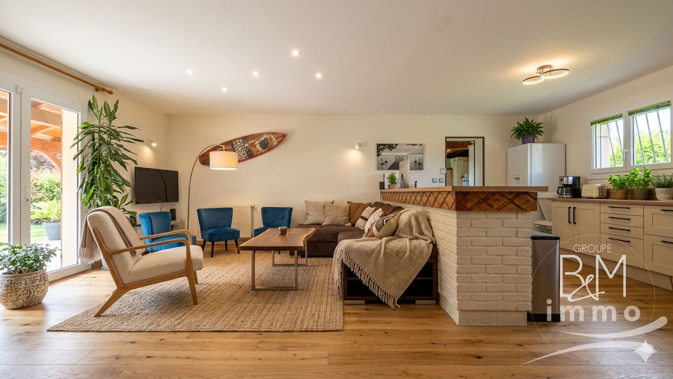 Située à Vielle-Saint-Girons, cette propriété offre un beau cadre de vie, à quelques minutes de l'océan, de la forêt landaise et des pistes cyclables. La maison principale, de type 4, se distingue par une grande pièce et des espaces harmonieux, pensés pour un confort optimal en résidence principale comme en maison de vacances. Sur la même parcelle d'environ 1 000 m² se trouve un chalet indépendant d'environ 36 m², parfaitement aménagé. Véritable valeur ajoutée, il permet d'envisager une location saisonnière attractive ou d'accueillir famille et amis en toute autonomie. L'ensemble bénéficie d'un bel extérieur, comprenant notamment une large terrasse couverte, idéale pour profiter des beaux jours dans un cadre calme et verdoyant. Cette propriété constitue une opportunité rare sur le secteur, alliant qualité de vie, potentiel locatif et proximité immédiate des atouts naturels de la côte landaise. Stéphane DAGREOU (EI) Agent Commercial - Numéro RSAC : 945 258 028 - DAX.