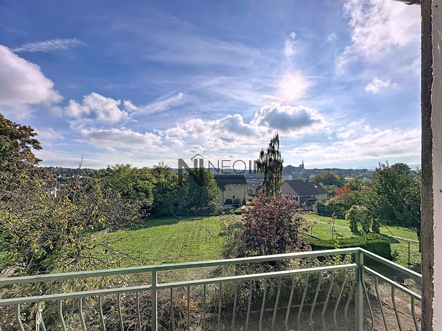 Maison individuelle proche centre avec beau terrain. - Rez-de-chaussée d'environ 90 m² : Entrée, cuisine aménagée ouvrant sur balcon orienté sud - jolie vue sur la ville - salle-à-manger, salon (ou chambre), deux chambres, wc, salle d'eau. - Sous-sol complet d'environ 90 m² : Grand garage et deux pièces. - Terrain clos de 1047 m². Fenêtres double vitrage. Chauffage central fuel.