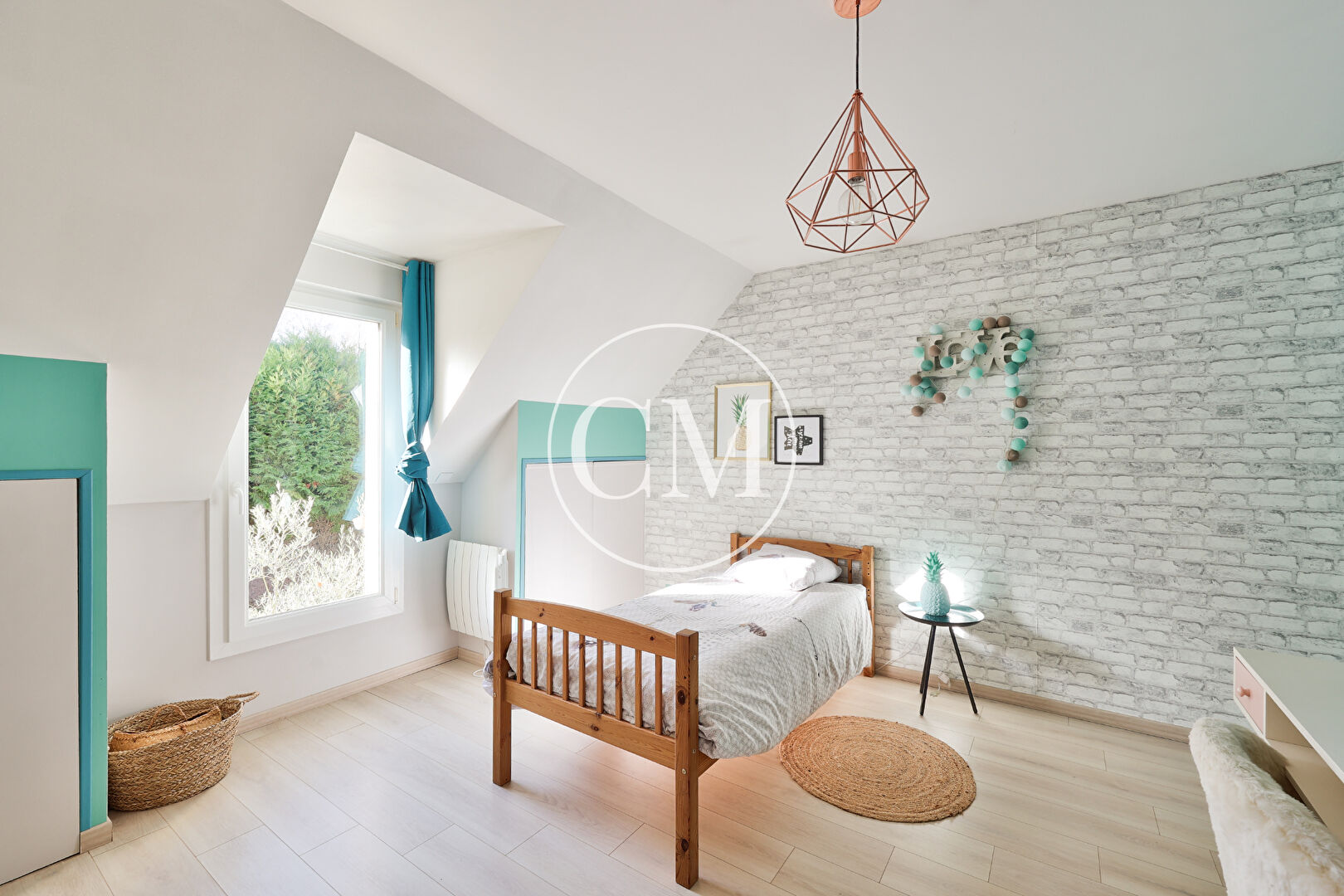 MAISON CONTEMPORAINE MÉRÉ Cette maison contemporaine de 190m2 au calme absolu se situe sur un terrain de 1 200 m2, Maison familiale calme et lumineuse offrant de très beaux espaces de vie donnant accès sur le jardin Au rez-de-chaussée, un esprit loft avec une triple exposition d'environ 65 m2 est composé d'un salon avec un poêle à bois, une salle à manger et une cuisine dinatoire . Une grande chambre en rez-de-chaussée avec sa salle d'eau, des toilettes séparés et un cellier-buanderie complètent ce niveau. Au premier étage, un spacieux palier lumineux , une suite parentale avec salle de bains et dressing, 2 chambres, une salle d'eau et des toilettes séparés. Beau terrain sans vis à vis au calme avec. Un garage et un carport complètent l'ensemble. Le terrain est piscinable Proximité des commerces et des écoles de Montfort, et à 5 minutes de la gare direct Paris-Montparnasse.