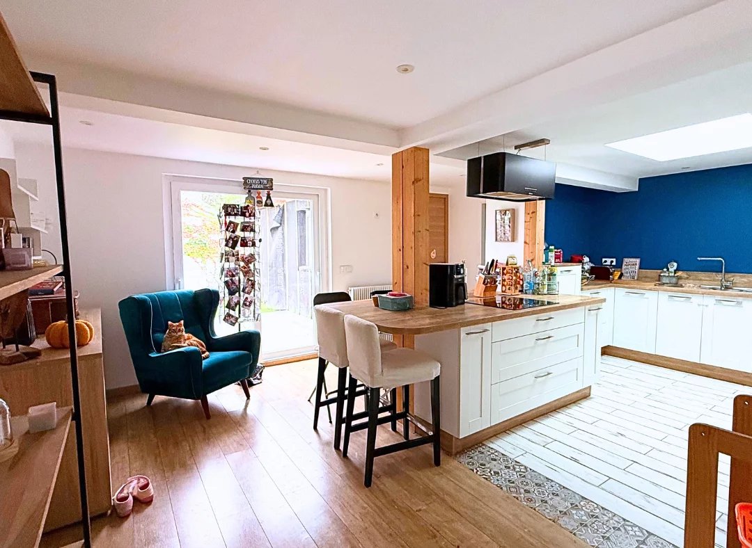 Semi plain-pied - Env. 120 m² avec jardin et garage Semi-individuelle en semi plain-pied, denviron 120 m² habitables. ?Elle comprend : vaste séjour avec cuisine équipée ouverte, deux chambres, 2 salles de bains et un espace buanderie. A létage : chambre avec espace dressing ou bureau. ?A lextérieur : façade arrière à finaliser, terrasse, garage et jardin clos. (2.00 % honoraires TTC à la charge de l'acquéreur.) Jerome BACCOU (EI) Agent Commercial - Numéro RSAC : 408677730 - .