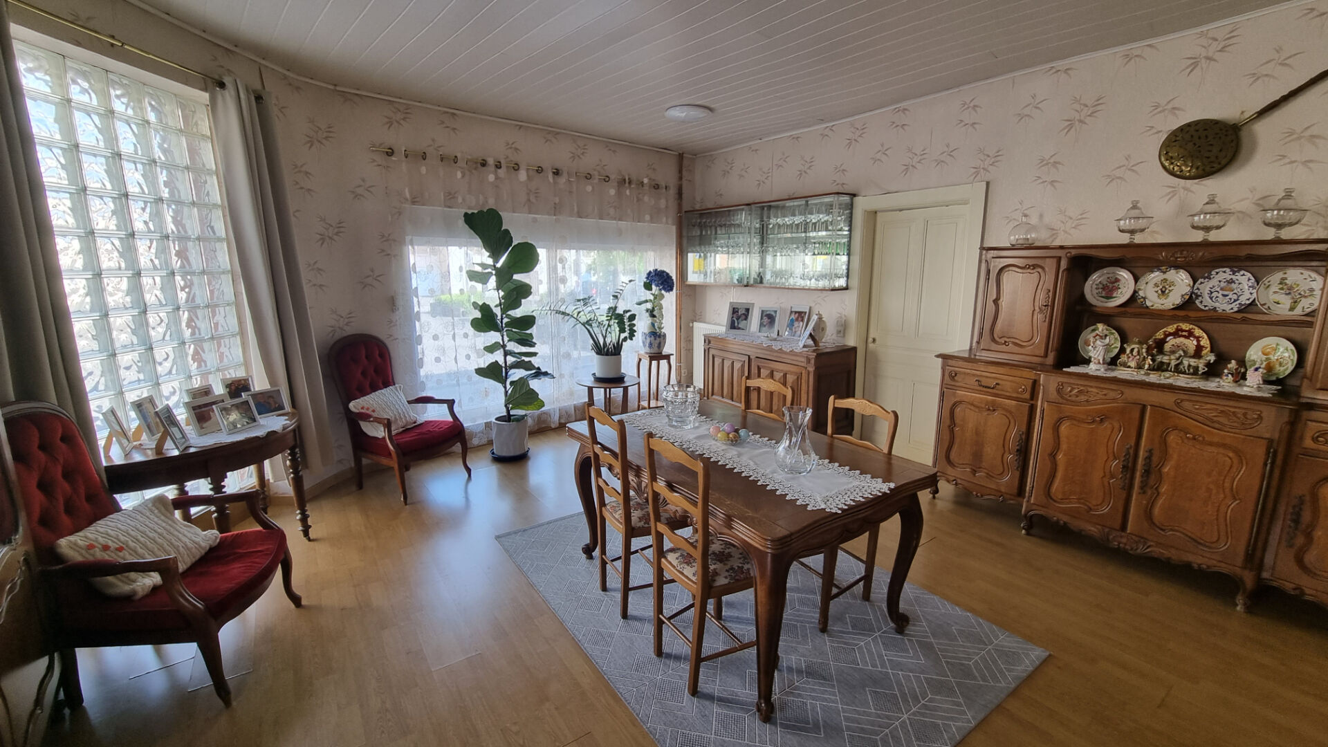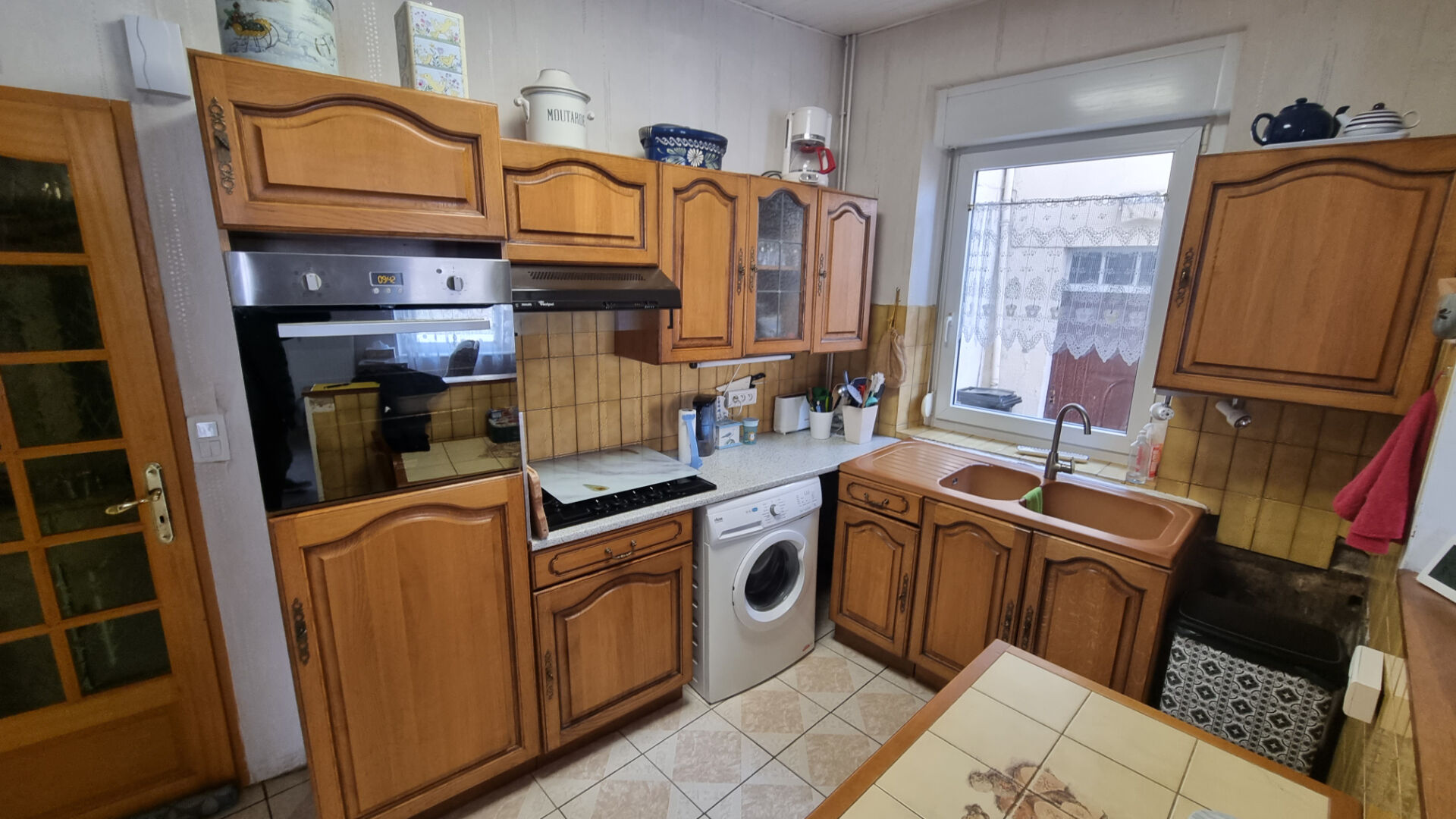 Maison de ville proche école et commerces d'une surface d'environ 157 m² avec dépendance, comprenant au rez de chaussée, hall d'entrée, cuisine aménagée ouverte sur salon-séjour ( 30 m² ), 1 chambre, salle d'eau avec wc ( tout à l'égoût ). A l'étage, 2 chambres, 1 grande pièce de 25 m², salle de bains avec wc. Grenier aménageable. Caves. Terrasse. Dépendance annexe aménageable à restaurer. Terrain attenant d'une surface totale de 205 m². Taxe foncière : environ 670 euros