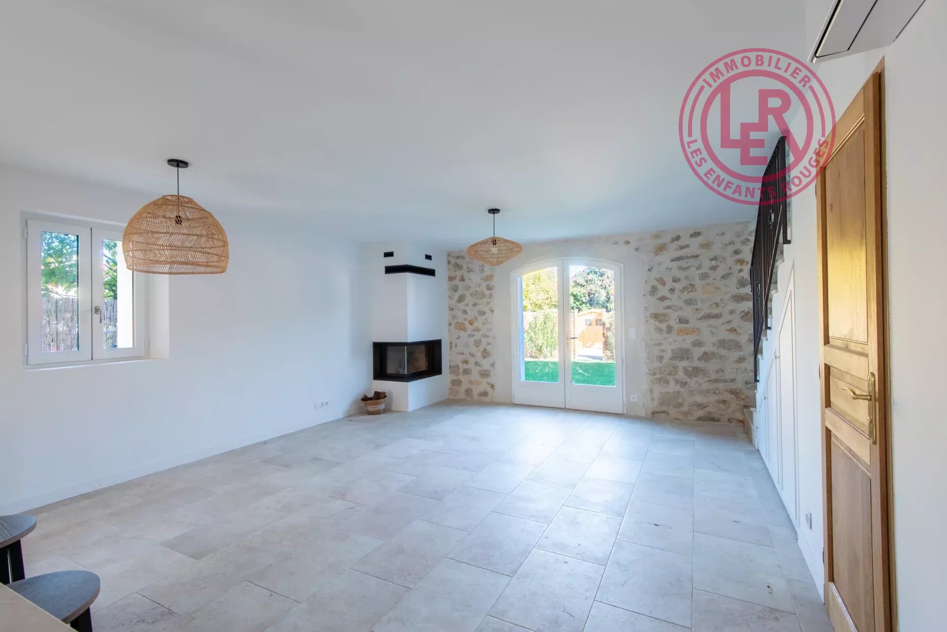 Ancienne grange agricole en pierre du début du XXᵉ siècle, entièrement rénovée avec des prestations haut de gamme et transformée en deux maisons mitoyennes d’environ 90 m² chacune (87 m² loi Carrez). Chaque maison comprend : Rez-de-chaussée : grande pièce à vivre traversante et lumineuse avec trois fenêtres dont deux portes-fenêtres donnant sur les jardins avant et arrière. Cuisine ouverte équipée (électroménager Bosch et SMEG, plan de travail en marbre), coin repas, salon avec cheminée ouverte. Étage : trois chambres (dont une suite parentale), deux salles de bain, deux WC indépendants, buanderie et nombreux rangements intégrés. Bel escalier en pierre et fer forgé, climatisation réversible. Les extérieurs offrent : Jardin privatif d’environ 400 m² (nord et sud) avec arrosage automatique, Deux places de stationnement par maison, Cabanon pour vélos et outils. Bien en copropriété légère (portail électrique et voie d’accès partagés). Situées à Le Puy-Sainte-Réparade, charmant village provençal à 18 km d’Aix-en-Provence et 40 min de l’aéroport Aix/Marseille, entre le Luberon et la Côte d’Azur. Le village offre tous commerces et services à pied (pharmacies, boulangeries, boucheries, fromagerie, marché, restaurants, etc.) et abrite le Château La Coste, domaine viticole et artistique renommé avec restaurants, hôtels et œuvres d’art contemporaines. Les informations sur les risques auxquels ce bien est exposé sont disponibles sur le site Géorisques : www.georisques.gouv.fr Agent commercial immatriculé au Registre spécial des agents commerciaux du greffe du tribunal de commerce de Paris sous le numéro 798 425 583 00019.9.