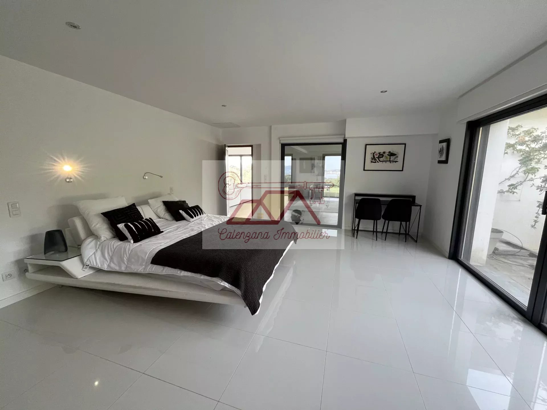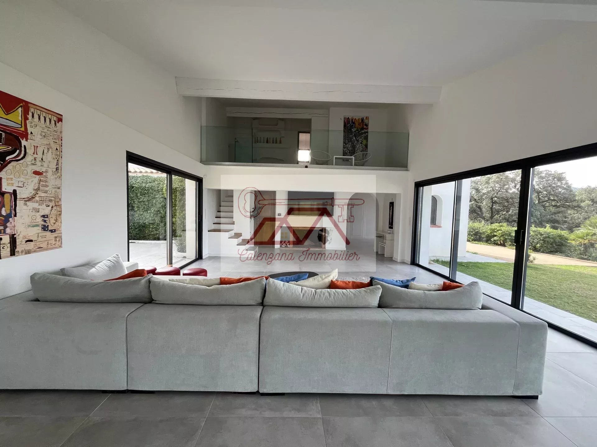 À quelques pas du village de Lumio et des eaux scintillantes de la Méditerranée, cette villa d’exception d’environ 380 m² s’ouvre sur une vue mer panoramique envoûtante, embrassant la baie de Calvi et sa citadelle majestueuse. Dès l’entrée, la demeure dévoile une vaste pièce de vie baignée de lumière, composée d’un salon-séjour élégant prolongé par une salle à manger conviviale. Par cet espace, une mezzanine mène à une grande suite parentale, véritable refuge intimiste, dotée d’un dressing et d’une salle de bains avec douche.