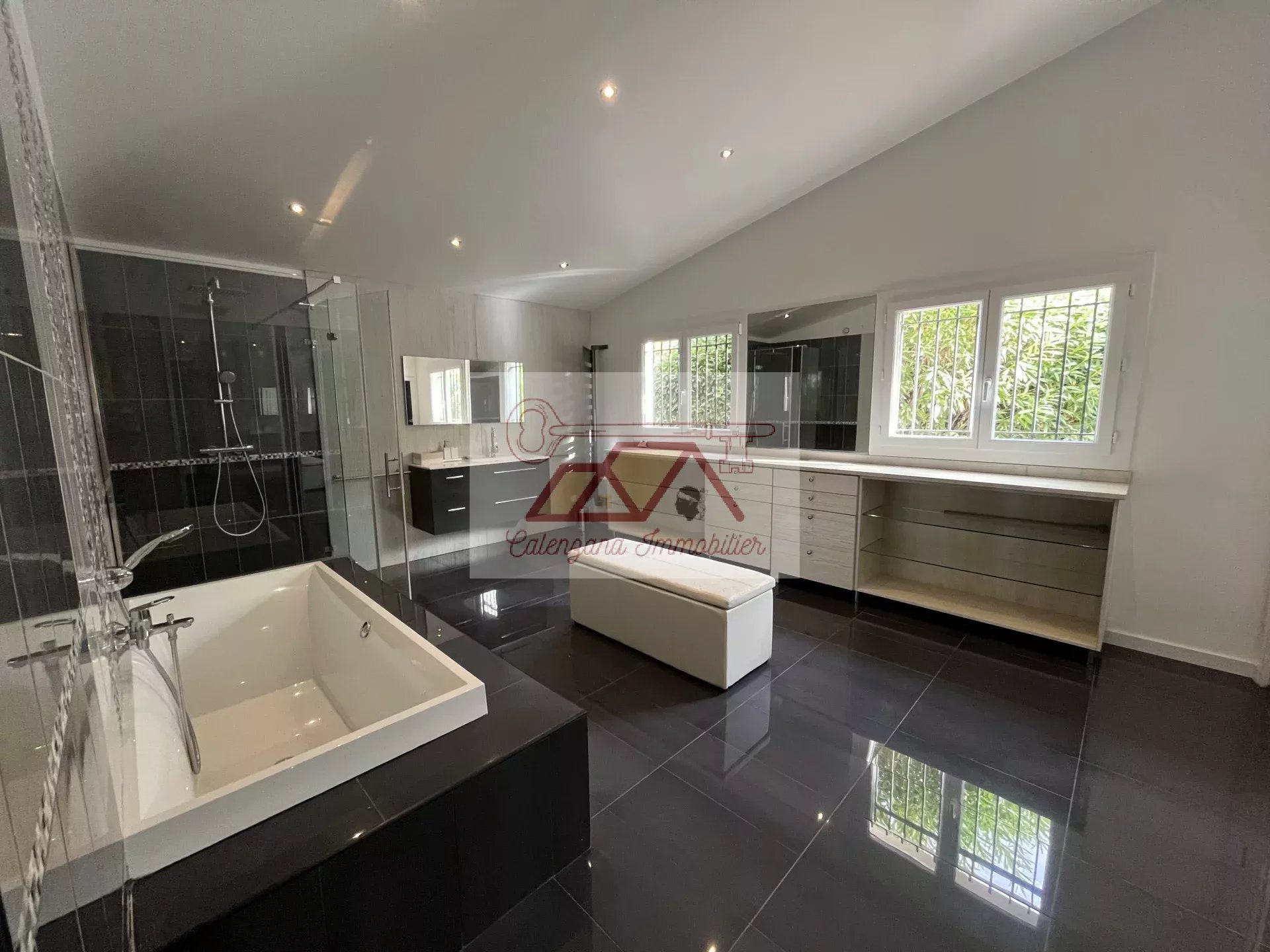La partie nuit offre six chambres, chacune dotée de sa salle de douche privative. La chambre principale, véritable havre de sérénité, bénéficie d’une salle de bains et d’une douche, ainsi qu'une chambre de service.