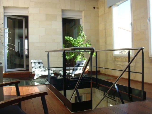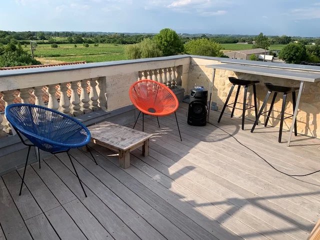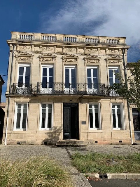 A seulement 30 kilomètres de Bordeaux, dans une commune agréable et disposant de toutes les commodités, très bel hôtel particulier totalement restauré avec goût et matériaux de qualité offrant sur environ 235 m² et plusieurs niveaux: au rez-de-chaussée, une entrée desservant un salon-bureau avec cheminée et moulures, une salle à manger avec parquet, une grande cuisine moderne et équipée, un salon-bibliothèque avec une cheminée, un wc, un garage double avec une cuisine de service et une cave à vin voûtée; au premier étage, un lumineux salon de 43 m² avec plusieurs balcons, un patio desservant une chambre avec salle d'eau et wc, un escalier menant au rooftop, une suite parentale avec salle d'eau, wc et dressing, une lingerie; au deuxième étage, deux chambres avec un wc, un espace grenier et un superbe rooftop aménagé de 40 m² avec une vue panoramique sur les vignes. Cette demeure chaleureuse, aux prestations de qualité et à la décoration raffinée dispose également d'une façade Napoléon III restaurée. Gare dans la commune avec liaisons régulières vers et depuis Bordeaux. Environnement calme et plaisant.