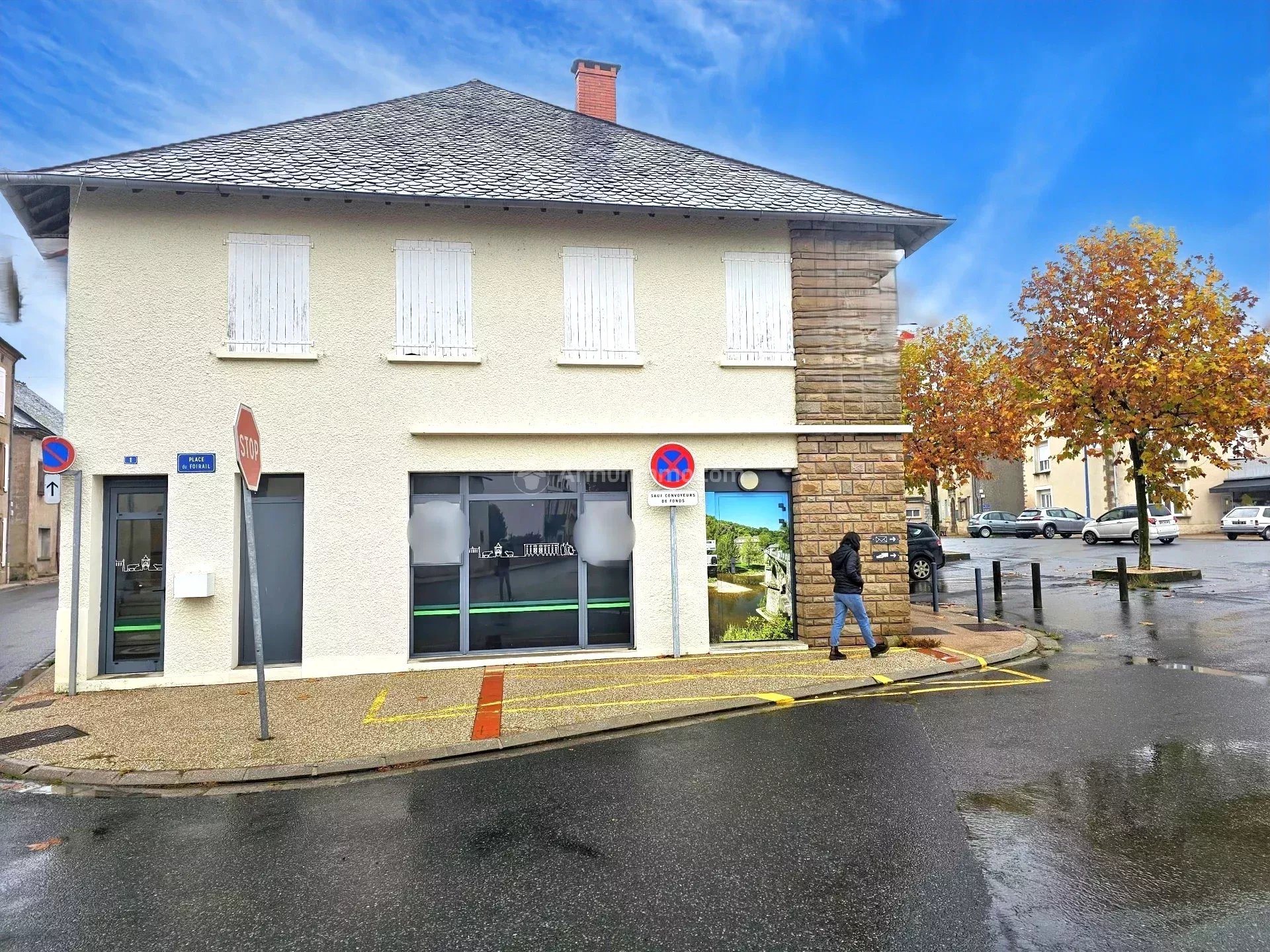 Situé sur la place centrale du village, cet immeuble locatif est composé de : Au rez-de-chaussée : Un local commercial ou bureau, libre, d'environ 139 m². Un local d'environ 11 m², loué 650 euros/an. Au 1er étage : Un appartement T4 d'environ 110 m², comprenant cuisine, séjour, trois chambres, salle de bain. Loué 4340 euros/an. Des bureaux d'environ 47 m² qui peuvent être transformés en appartement de type 2. Libre. Sur le toit, des panneaux photovoltaïques rapportent environ 3 000 euros/an.
