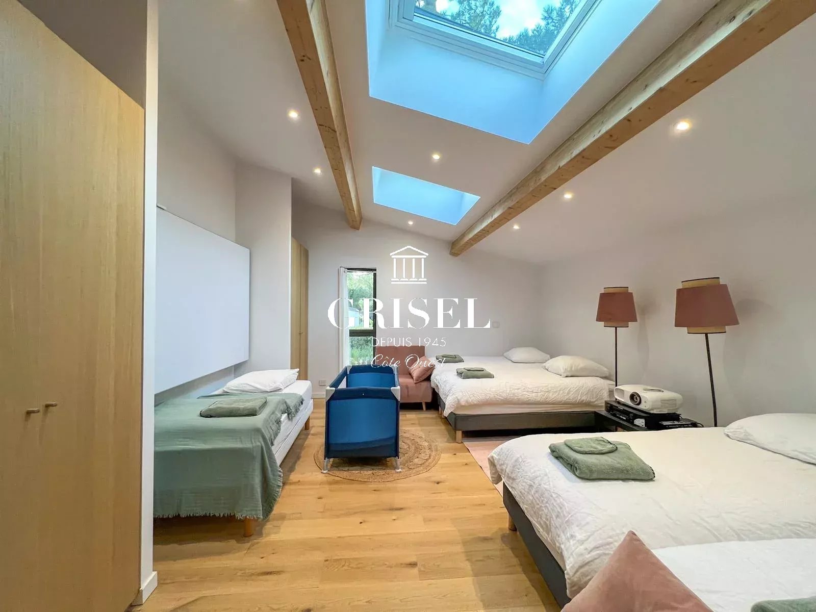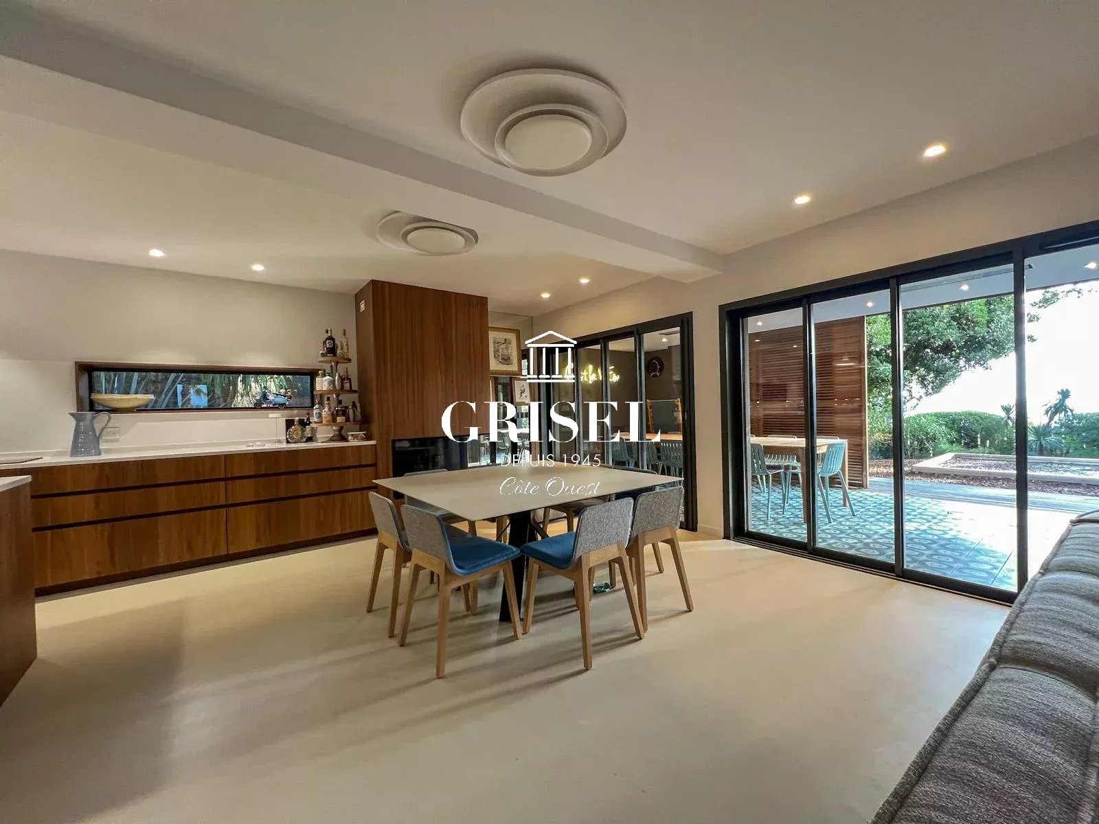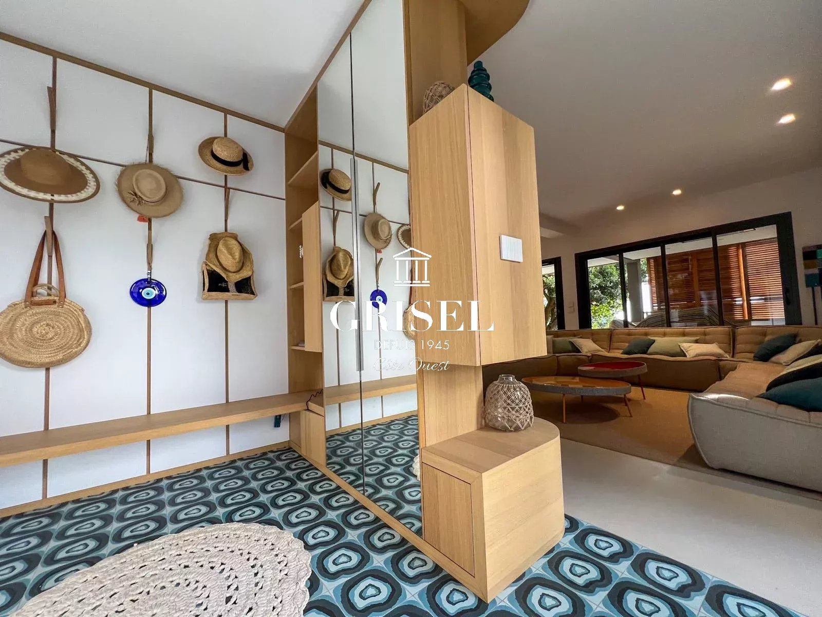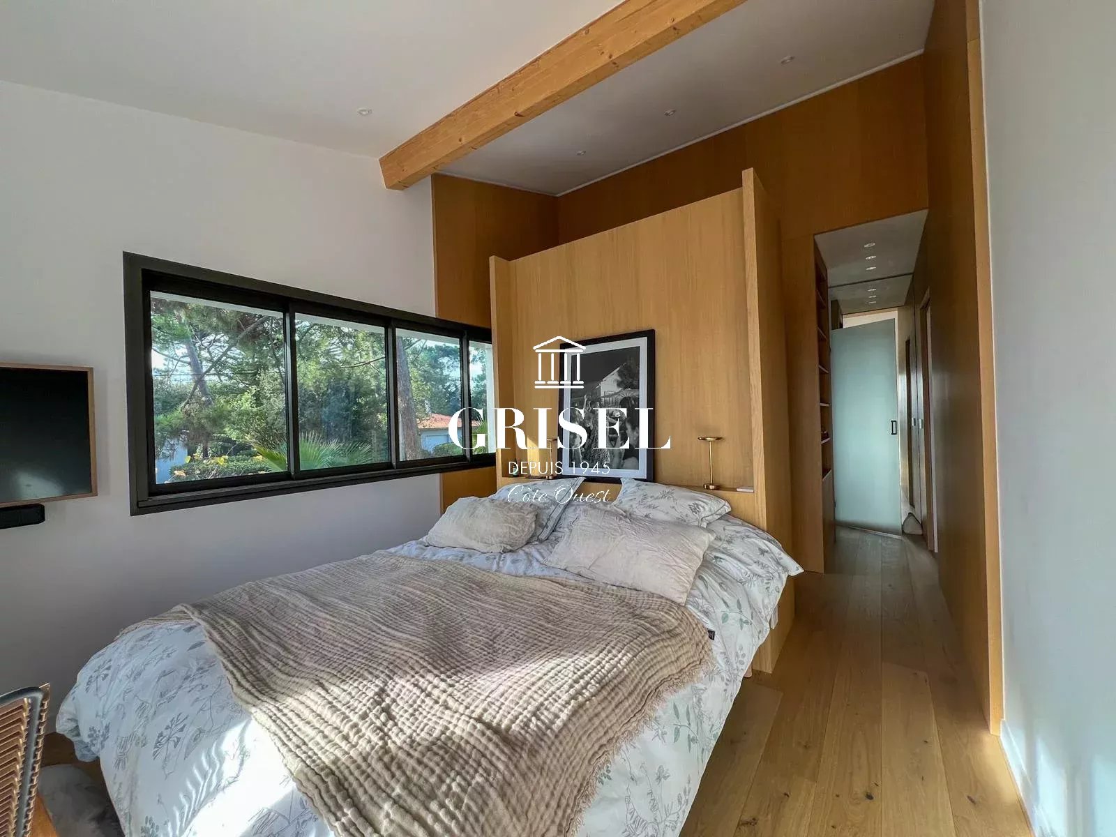 À l’abri des regards, au cœur d’une végétation luxuriante, cette somptueuse villa offre un cadre de vie exceptionnel mêlant tranquillité, confort et prestations haut de gamme. Dotée de 7 chambres, dont une spacieuse suite parentale, la propriété dispose d’un vaste espace de vie de 60 m², idéal pour recevoir famille et amis en toute convivialité. Profitez d’une terrasse couverte chauffée pour prolonger les soirées d’été ainsi que d’une piscine parfaitement intégrée à son environnement naturel. Entièrement domotisée, la villa offre un confort de vie moderne et intuitif, associé à des prestations de haute qualité. Un bien rare, mêlant élégance, intimité et panorama exceptionnel sur le Bassin d’Arcachon.