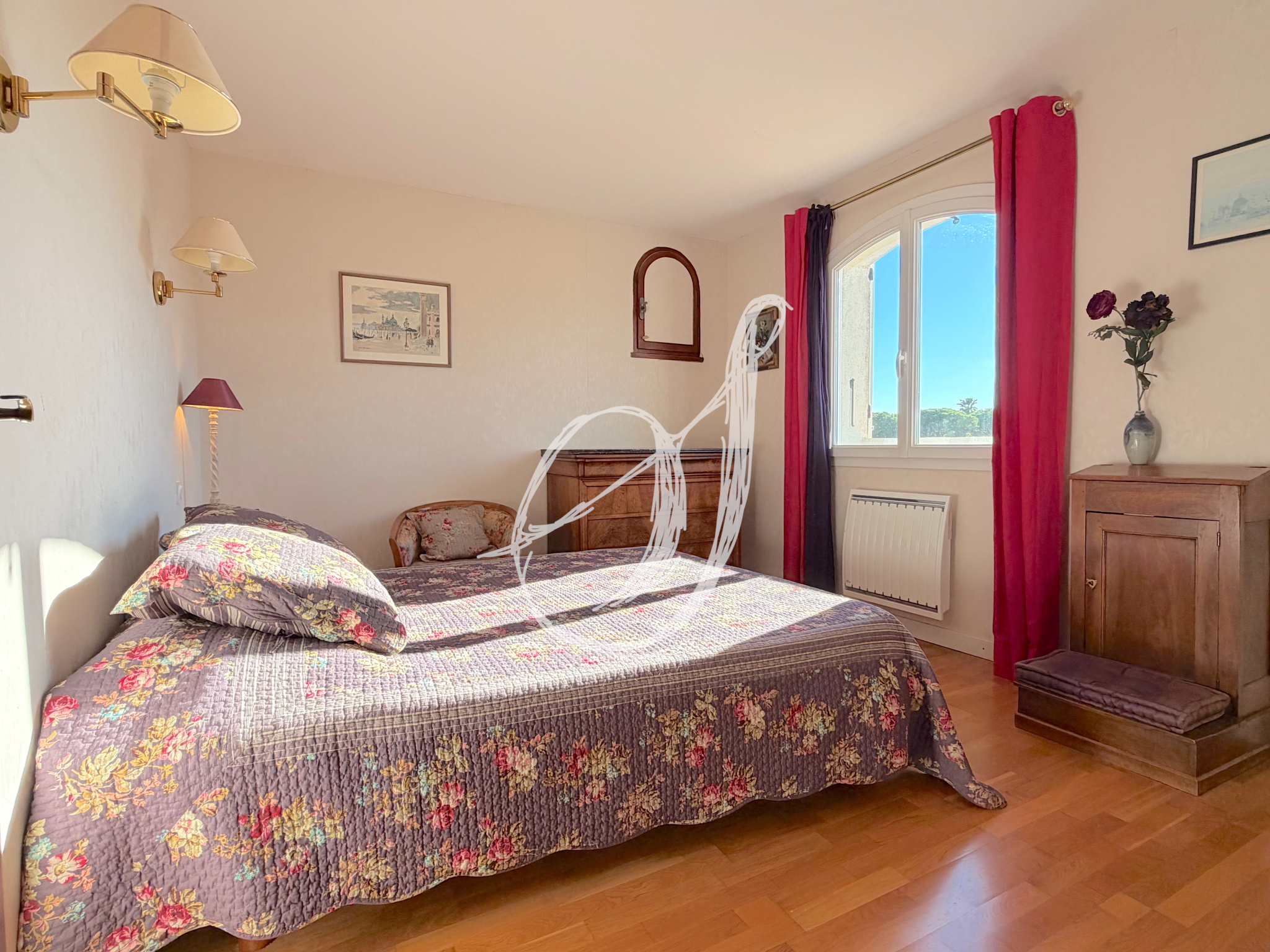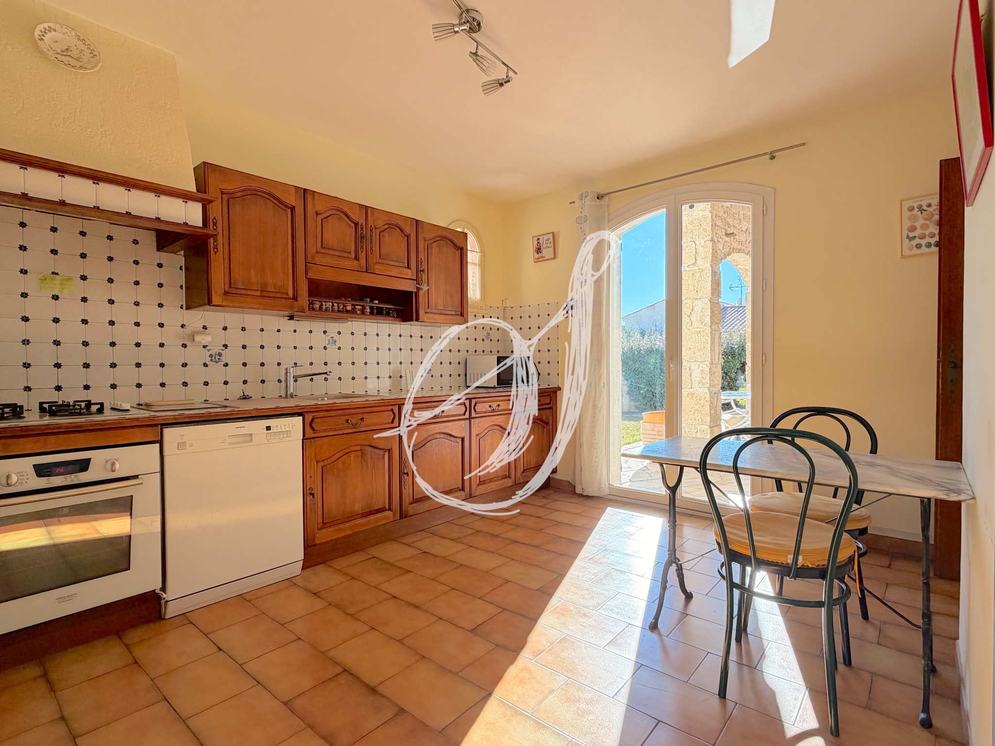 Au coeur du village, à proximlité de toutes commodités à pieds & au calme, cette villa bénéficie d'une parcelle de 462 m2 exposée Sud. Bourré de charme & baigné de lumière, le séjour de près de 38 m2 dispose d'une cheminée. La hauteur sous plafonds de 4 mètres est mise en valeur par les poutres apparentes & les parrefeuilles. La cuisine dinatoire est séparée & s'ouvre également sur terrasse & jardin pouvant accueillir une piscine. Au rez-de-chaussée, on retrouve également une chambre & une salle d'eau, ainsi qu'un garage de près de 30 m2 communicant avec la maison depuis le cellier. À l'étage, 2 vastes chambres se partagent une salle de bains. De construction traditionnelle & parfaitement entretenu, ce bien est équipé de climatisation réversible par split dans chaque pièce, menuiseries en PVC double vitrage, tableau électrique refait.