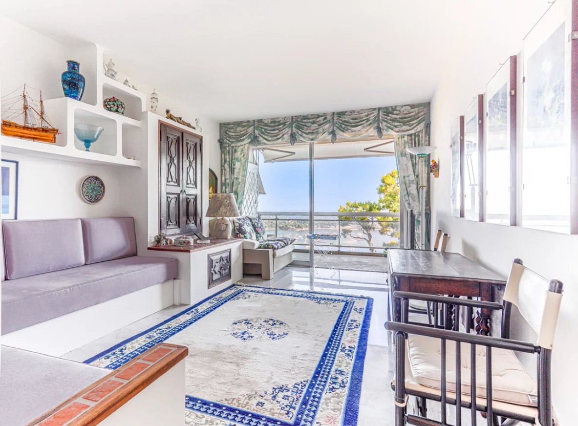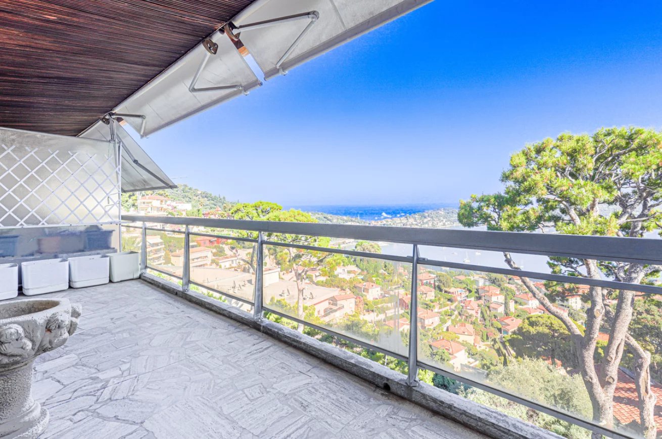 Car c’est ici que réside la véritable rareté : une vue absolument spectaculaire sur la rade de Villefranche et St Jean Cap Ferrat, comme un tableau vivant encadré par les pins parasols. Que ce soit depuis le séjour ou la terrasse, le regard embrasse l’une des plus belles perspectives de la Côte d’Azur.