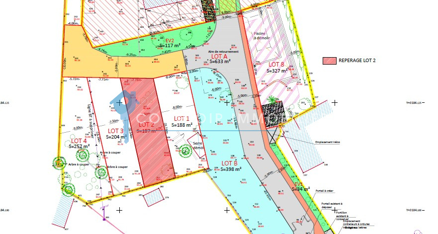 Nîmes collines Nord, secteur recherché proche Tour Magne, dans une impasse, terrain à bâtir, borné, viabilisé avec bornes de recharges véhicules électriques, 187 m2, projet de construction d'une maison contemporaine en R+1, orientée Sud, de 105 m2 SP. Surface libre 93 m2.