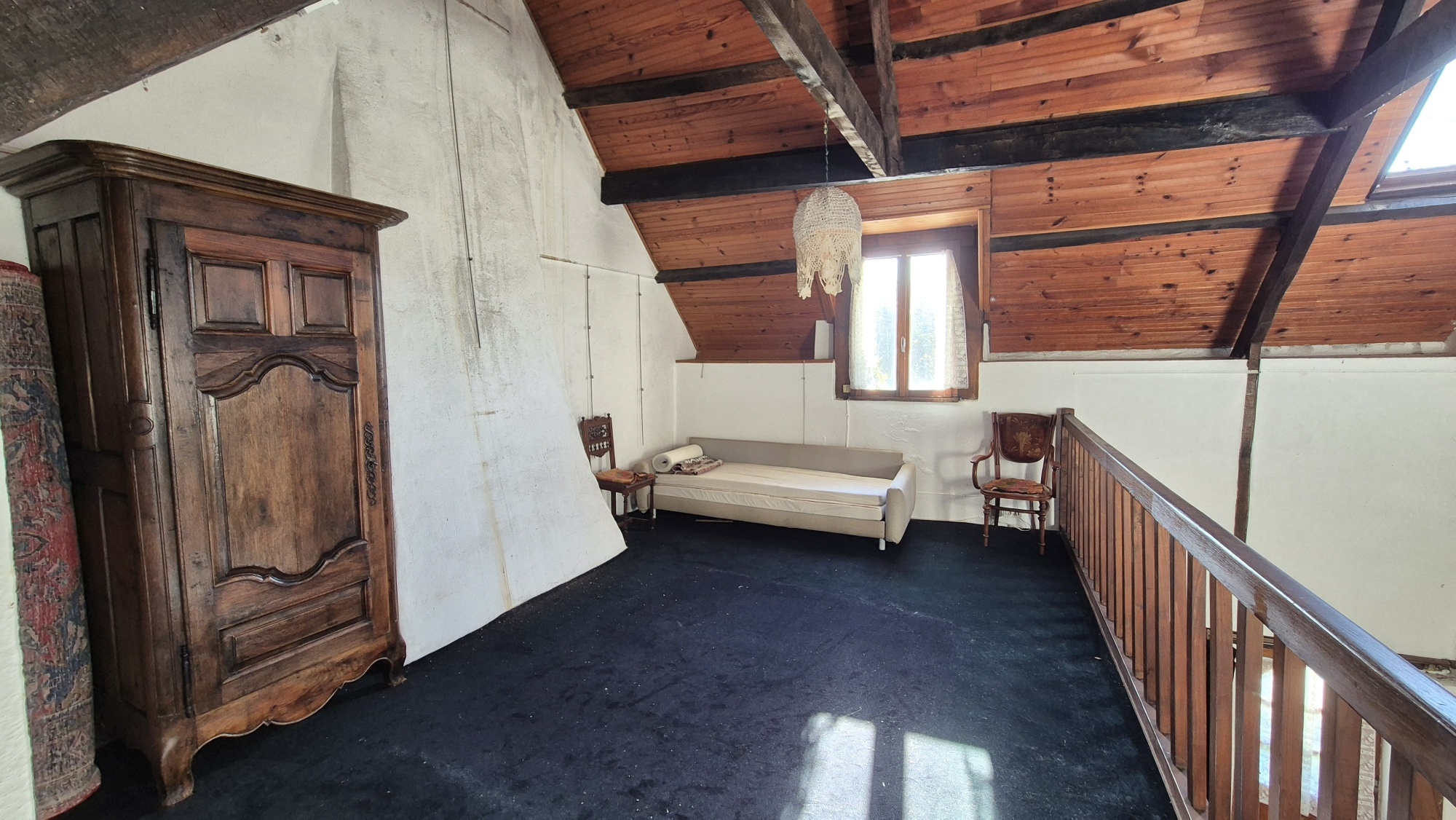 A l'étage : une mezzanine et une chambre.