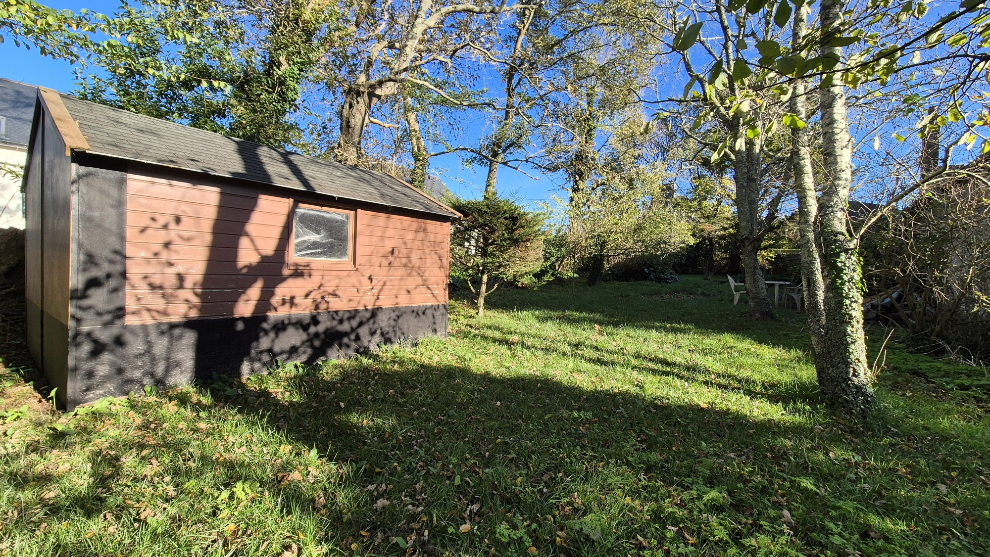 En annexes : un terrain clos et arboré avec un chalet et un abri de jardin.