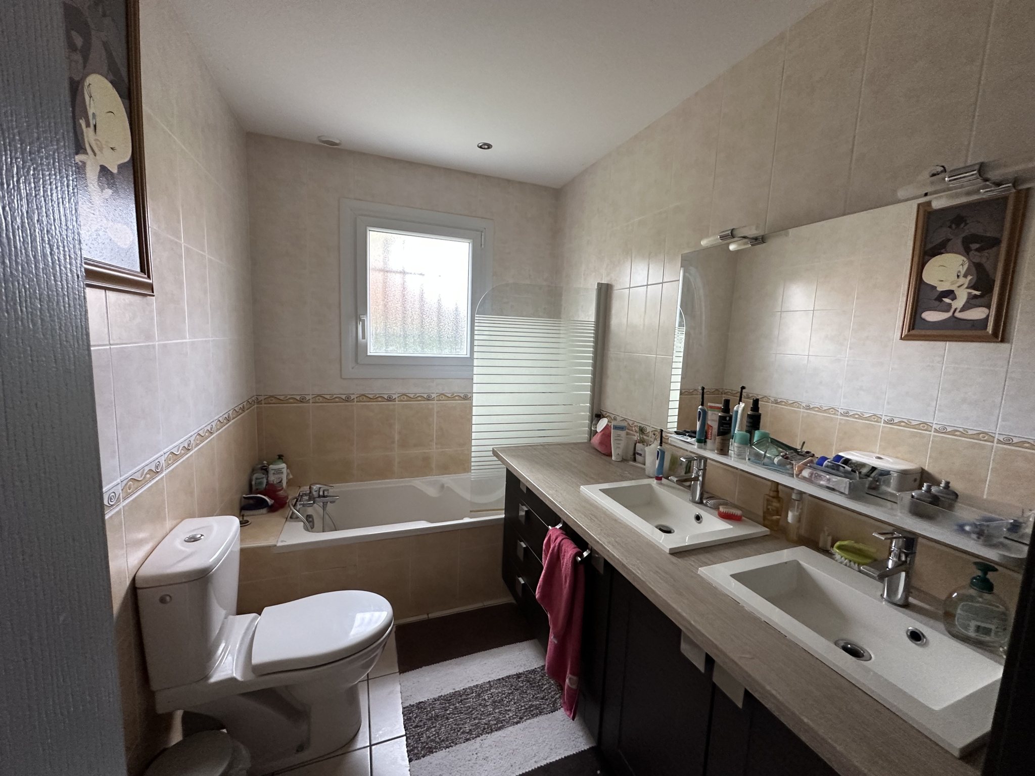 Construite en 2003, elle offre un salon/séjour convivial avec cuisine américaine équipée et cellier, 4 chambres, une salle de bains avec WC, 1 WC séparé, une véranda ouverte, un garage et une belle terrasse donnant sur le jardin exposé Sud.