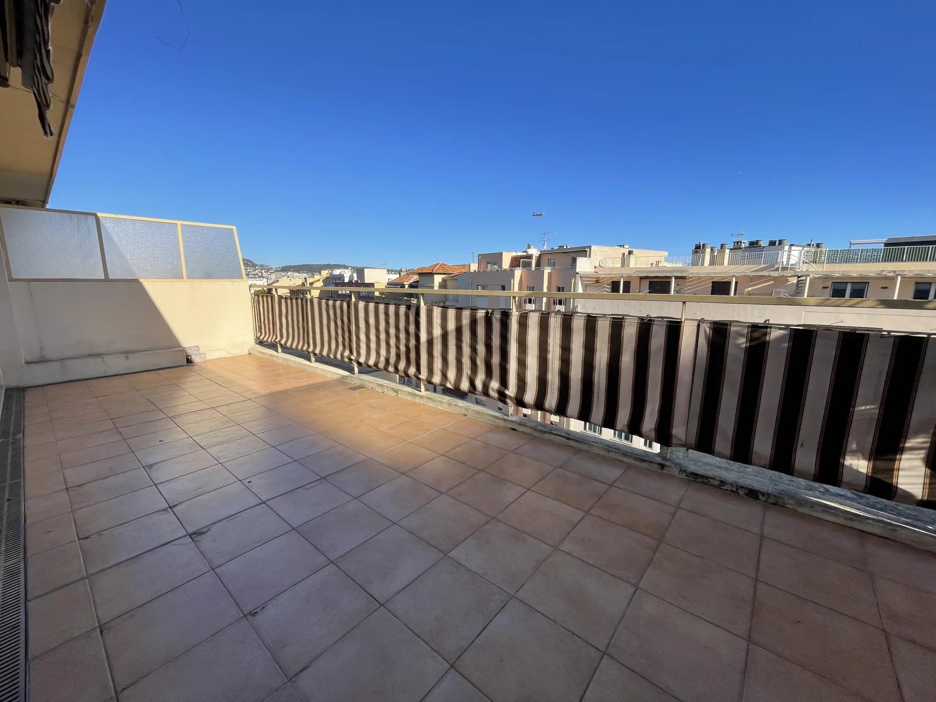 Situé avenue de la Californie, cet appartement de trois pièces en dernier étage bénéficie d'une terrasse de 20m2, d'une cuisine séparée aménagée et d'une cave. Chauffage, eau chaude et eau froide collectifs. Possibilité de louer un garage ou une place de parking en sus ! Proche de toutes les commodités !