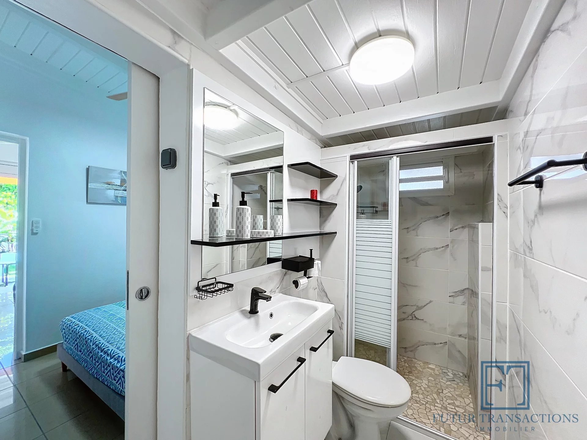 Le Moule, secteur Porland, à 5 mn de l'axe principal vers St François et Le Moule. Vous recherchez un havre de paix, une retraite paisible dans la verdure, alliant charme et confort, tout proche de l'océan ? Ne cherchez pas plus loin ! Au sein d'une charmante propriété familiale sécurisée et au calme, découvrez ce bel appartement de 2 pièces tout confort d'une surface de 31 m2, récemment rénové et équipé et à la décoration raffinée. Aménagé de plain-pied pour plus de commodité, l'appartement se compose d'un séjour accueillant communiquant avec une cuisine aménagée et équipée (y compris lave-linge) et son coin repas en terrasse, une chambre confortable climatisée avec rangements, une salle d'eau moderne avec douche et toilettes, une seconde terrasse extérieure agréablement ventilée. Les Plus : - Secteur très calme et bien ventilé, - Autonomie en eau et électricité (citerne tampon et groupe électrogène), - Climatiseur et brasseurs d'air, - Stationnement pour 2 véhicules, - Accès sécurisé à la propriété (portail avec télécommande, fermetures volets roulants motorisés). Logement d'habitation loué en bail meublé d'un an (eau, électricité, connexion internet fibre et décodeur TV Canal inclus). * Loyer mensuel : 750 €, charges non comprises * Charges locatives mensuelles : 100 € (=provision avec régularisation annuelle) * Honoraires de visite, constitution du dossier, rédaction du bail : 248 € TTC * Honoraires de réalisation état des lieux : 93 TTC. * Dépôt de garantie : 1500 € Logement libre de suite. Sur dossier avec garanties. Pour toute information contactez Christophe OLIVERO : 06 90 70 15 59 / saint-francois@futurtransactions.com. Pour le réseau Futur Transactions, Christopher OLIVERO (EI), agent commercial immatriculée au RSAC de Draguignan sous le numéro 532877578 . Les informations sur les risques auxquels ce bien est exposé sont disponibles sur le site Géorisques : https://www.georisques.gouv.fr/