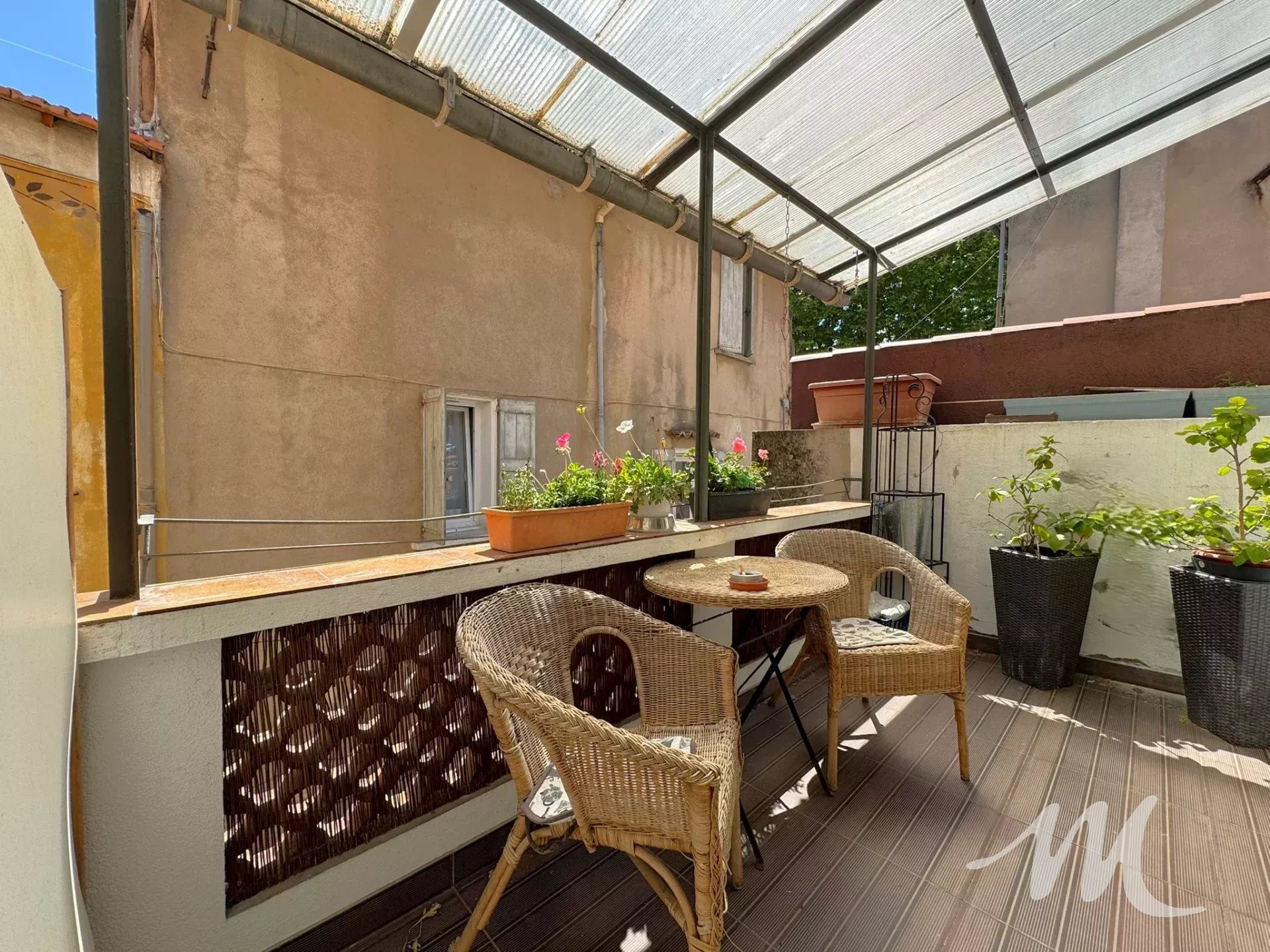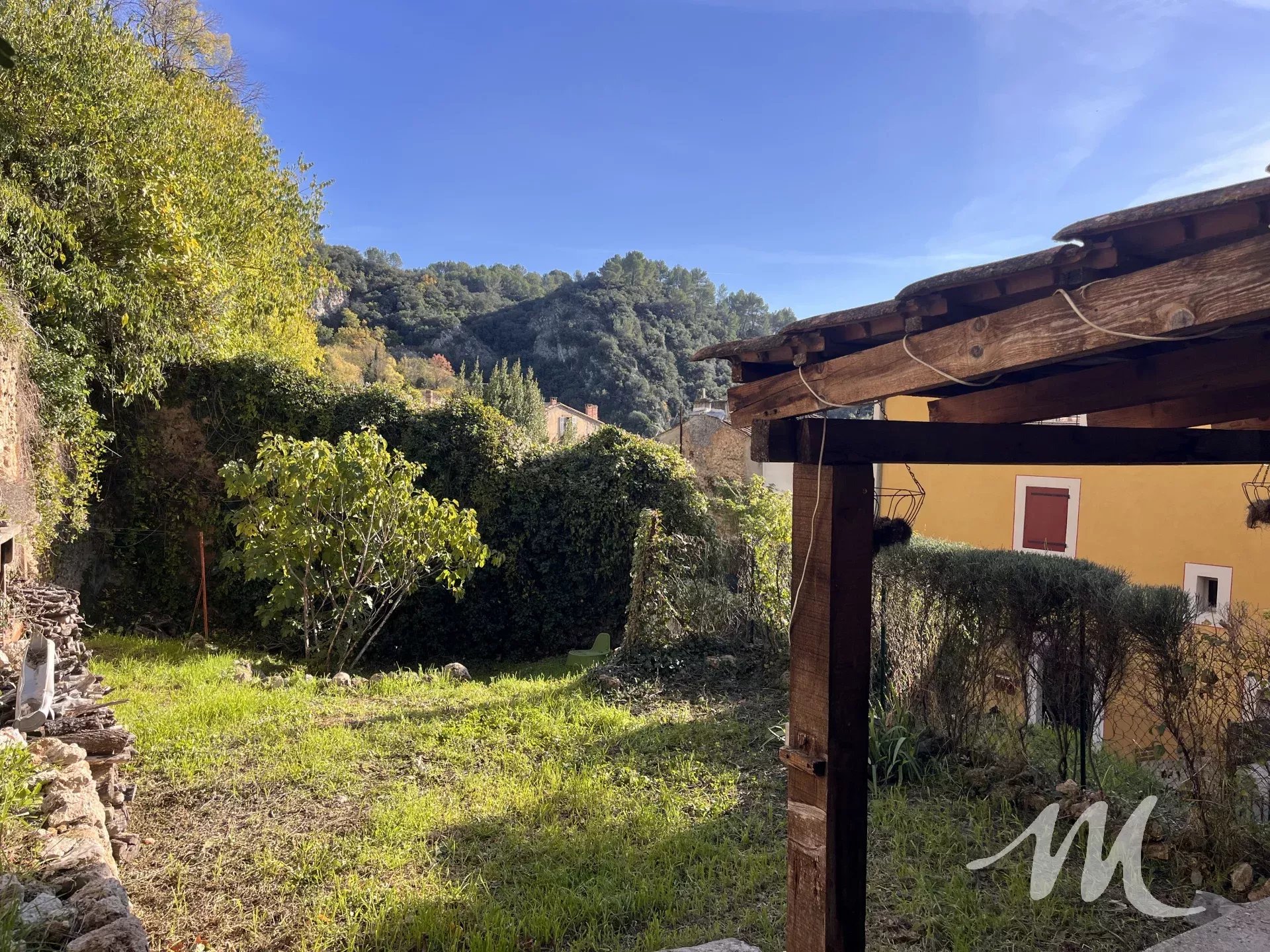 Au coeur du village, charmante maison de village de 120 m² environ sur 3 étages exposée sud, sud-est, avec un garage de 57 m², un jardin de 200 m² environ non attenant et dominant.