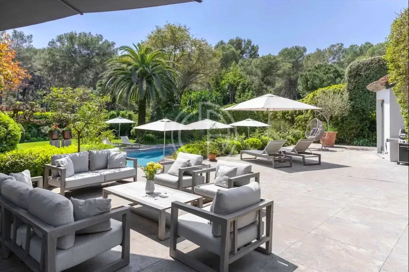 Au coeur d'un domaine prestigieux, villa principalement de plain-pied offrant un cadre de vie serein au cœur d'un écrin de verdure. Cette propriété se compose de vastes pièces de réception, qui ouvrent toutes sur un jardin merveilleusement paysager , idéales pour accueillir vos invités dans un cadre raffiné. Elle offre également quatre chambres en suite ainsi qu'un appartement indépendant vient compléter cette villa garantissant confort et intimité à chacun de ses occupants. À l'extérieur, un jardin d'environ 2700 m² est un véritable refuge, totalement à l'abri des regards, où des plantes et arbres majestueux créent une atmosphère apaisante. Pour parfaire ce cadre enchanteur, une piscine et un pool house entièrement aménagé. Plusieurs places de parking sont disponibles sur le terrain, vous assurant une facilité d'accès. A proximité des golfs réputés de la région et des écoles internationales.