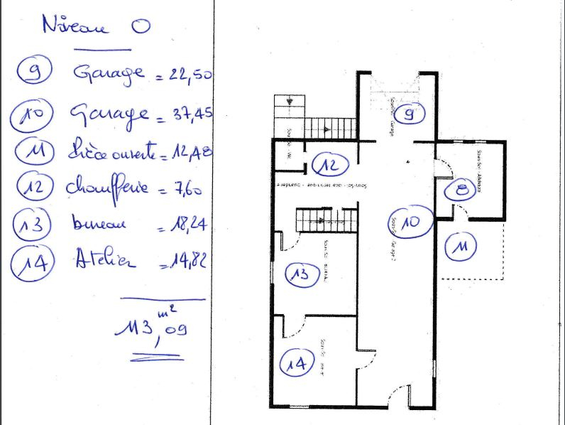 avec accès à une véranda donnant sur le terrain à l'arrière de la maison- Grande salle à manger- 2 chambres dont une avec grand placard mural + possibilité de création d'une chambre supplémentaire par le propriétaire- Hall d'entrée avec placards , WC et salle de bain- GrenierNIVEAU 0 : Superficie 113 M2- une chambre - garage avec porte électrique- une cave- un atelier- un WC- un lavaboTerrain arboré : 1 100 m2