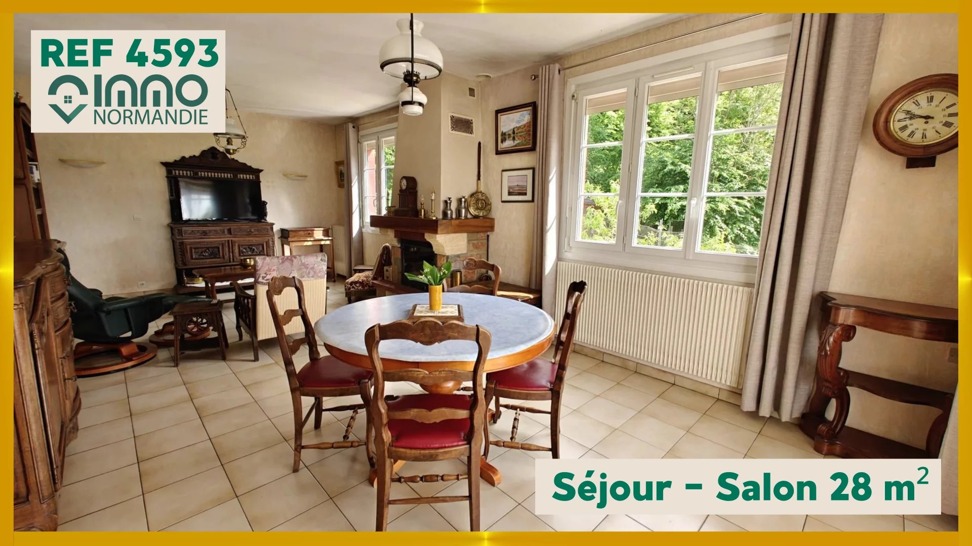 Maison sur sous-sol partiel avec vue sur la vallée de la Risle & en foret. Venez découvrir une entrée qui va desservir un beau salon/séjour avec insert & une véranda, une cuisine, 2 chambres, une salle de douche et WC indépendant. A l'étage : Palier qui offre 2 chambres sous-combles, placard et grenier. Sous-sol partiel : garage, chaufferie, rangement. Ainsi qu'un second garage indépendant. PVC double vitrage, volets roulants, fosse septique, chauffage au fioul. Terrain de 2.200m² avec partie boisée.