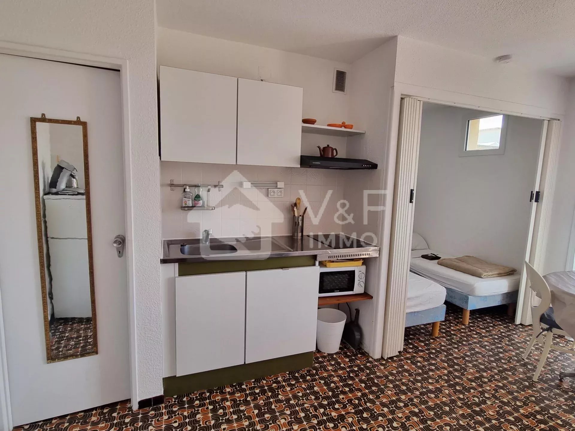 Proche de la plage et de sa promenade, dans une résidence sécurisée calme et paysagée. Découvrez cet appartement au 4éme et dernier étage avec ascenseur. En parfait état, il se compose d'une pièce à vivre avec sa cuisine, une chambre cabine avec fenêtre, une salle d'eau avec toilettes et d'une belle terrasse avec vue sur les Pyrénées et son Canigou la montagne sacrée du pays Catalan! vendu meublé Une place de parking privée et une cave finalise l'ensemble.