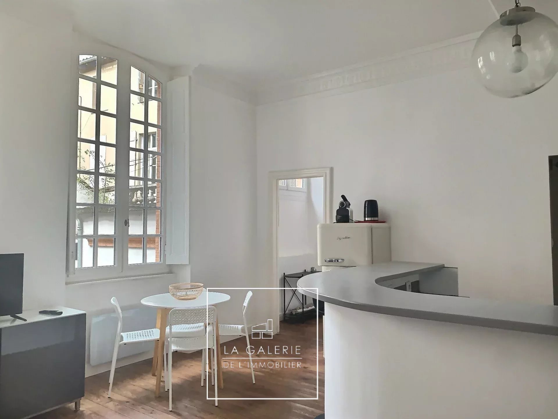 Saint Etienne au cœur d'un quartier prisé et au 1er étage d'une copropriété de charme bien tenue. Superbe appartement de type T2 meublé bénéficiant d'une très belle rénovation avec tout le cachet de l'ancien. Disposant d'une entrée avec rangement, d'un salon ouvert sur la cuisine équipée de plaque de cuisson, micro-onde, réfrigérateur et lave vaisselle. Le coin nuit dispose d'une chambre avec placard donnant sur la salle d'eau avec machine à laver. Vous serez sous le charme des lieux dans cet appartement lumineux et au calme absolu. N'hésitez pas à contacter l'agence : LA GALERIE DE L'IMMOBILIER Gestion - Location 05.62.72.28.44
