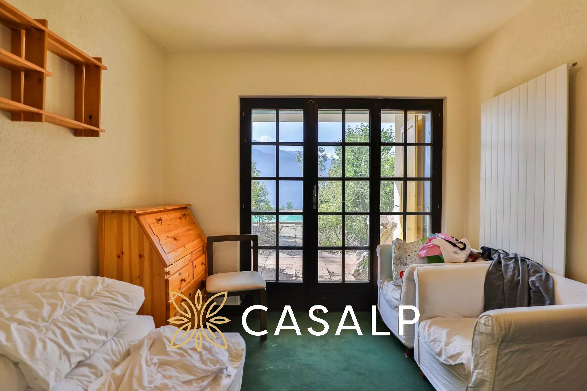 À vendre à Mollens, sur la commune de Crans-Montana, charmant demi-chalet de 155 m² réparti sur 3 niveaux, situé à seulement 10 minutes en voiture de la station. Il offre 5 chambres, 2 salles de bains, une cuisine moderne entièrement équipée, ainsi que plusieurs pièces rénovées dans les années 2010. Le bien dispose d’un garage box, d’une place de parc extérieure, d’un local à vélo et d’une piscine privative. À l’extérieur, un jardin et un balcon permettent de profiter d’une vue panoramique imprenable sur la vallée du Rhône et les Alpes valaisannes. Ce chalet est disponible à la vente en résidence principale ou secondaire, et accessible aux résidents étrangers.