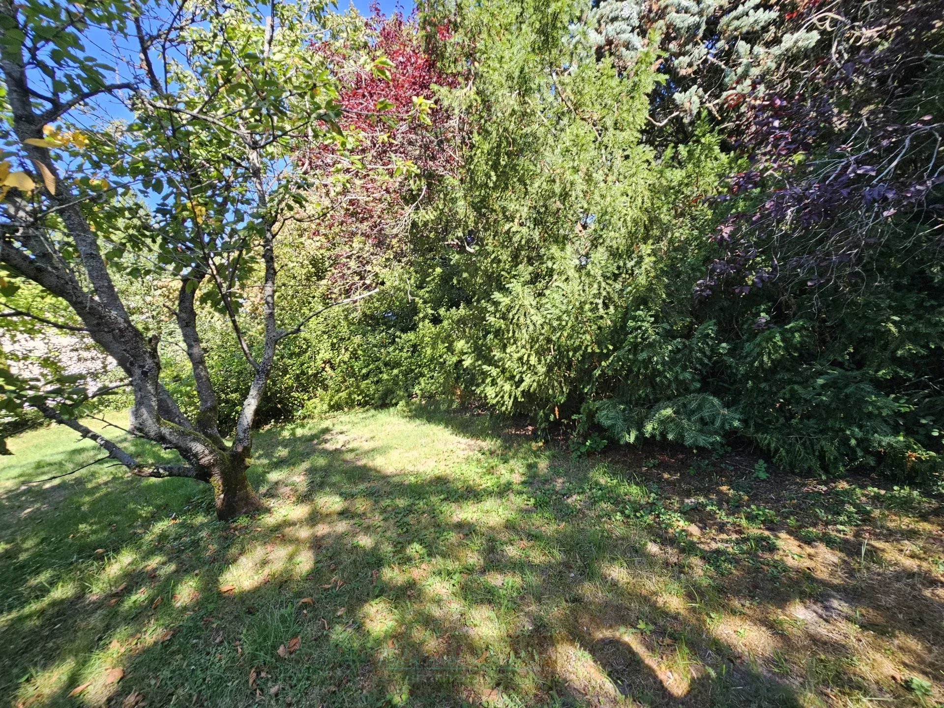 À l’extérieur, la propriété bénéficie d’un double garage non attenant et d’un terrain paysagé de 1 800 m² offrant un environnement calme et verdoyant.