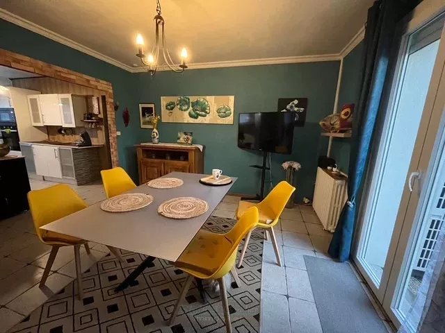 Venez visiter cette charmante maison de plain-pied, entièrement rénovée. Elle comprend une belle entrée qui s'ouvre sur le séjour lumineux, la cuisine ouverte aménagée est très fonctionnelle. Le couloir dessert un vaste salon et un chambre avec grand placard, un dressing, une salle d'eau refaite également et un wc. Une autre chambre spacieuse, ainsi qu'une buanderie complètent ce bien. Les baies vitrées donnent sur le jardin parfaitement entretenu. Cette maison a fait l'objet de rénovations de qualité, notamment la pompe à chaleur récente, le double vitrage pvc, l'isolation par l'extérieur, qui justifient la performance énergétique en C ! Les écoles, commerces et transports sont à proximité. A visiter sans tarder