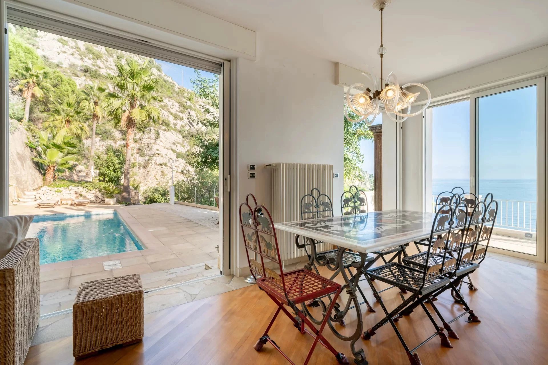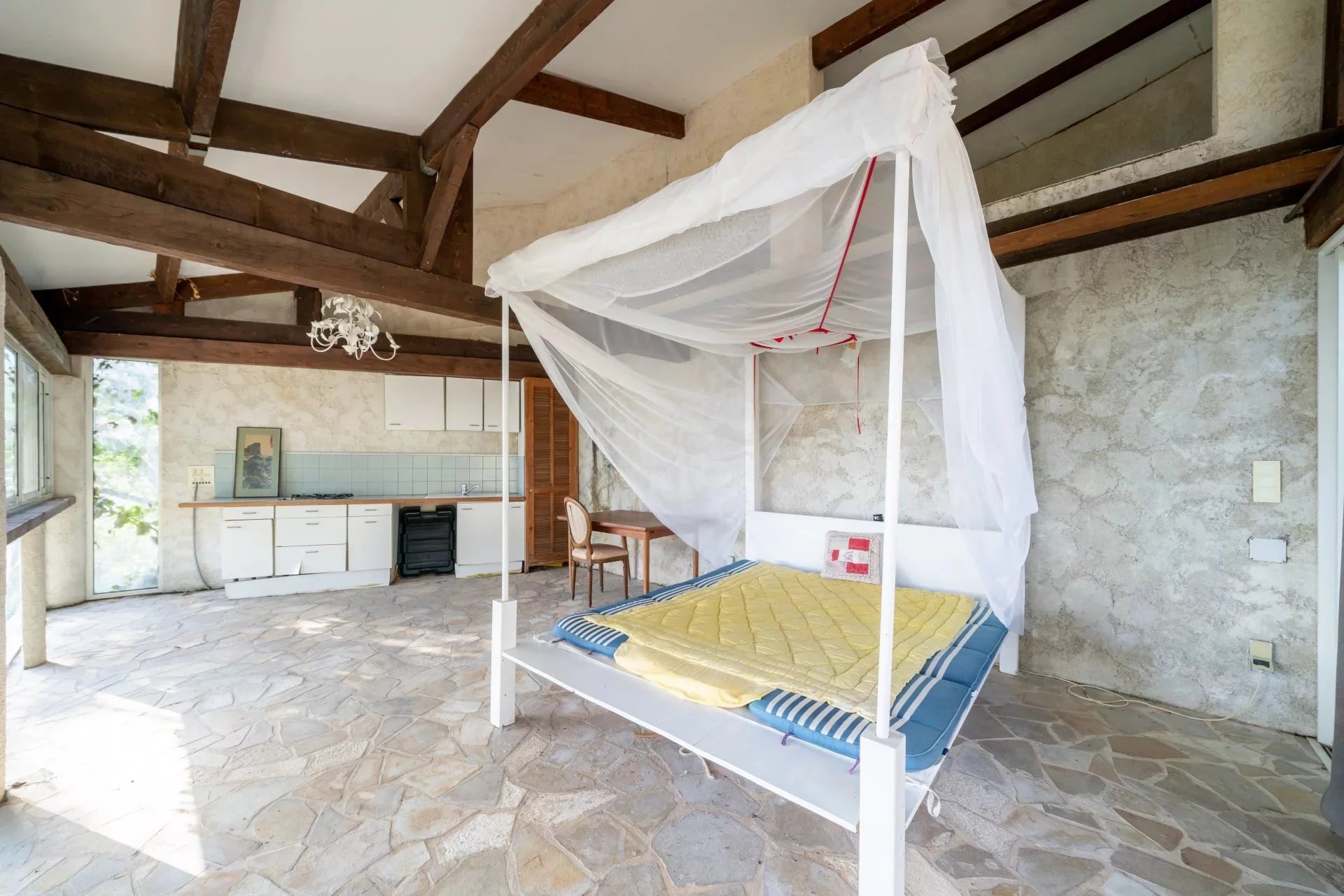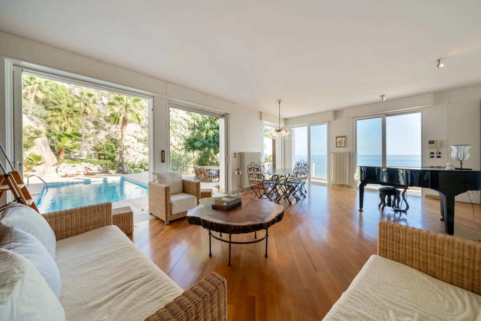 Cette remarquable propriété de 340 m², à réinventer selon vos envies, bénéficie d’une vue mer panoramique absolument splendide. Édifiée sur trois niveaux, elle se compose d’une vaste maison principale de 300 m² comprenant deux séjours élégants et six chambres, ainsi que d’une annexe indépendante de 40 m² — parfaite pour recevoir des invités, créer un espace bien-être ou aménager une salle de sport privée. Implantée au cœur d’un écrin de verdure, la propriété offre un potentiel exceptionnel pour repenser entièrement ses aménagements, tant intérieurs qu’extérieurs. Le vaste terrain d’environ 6 000 m², baigné de lumière, garantit une intimité totale, un calme absolu et des perspectives rares pour créer une résidence d’exception. Une piscine, de nombreuses places de stationnement ainsi qu’un garage viennent parfaire cet ensemble unique.
