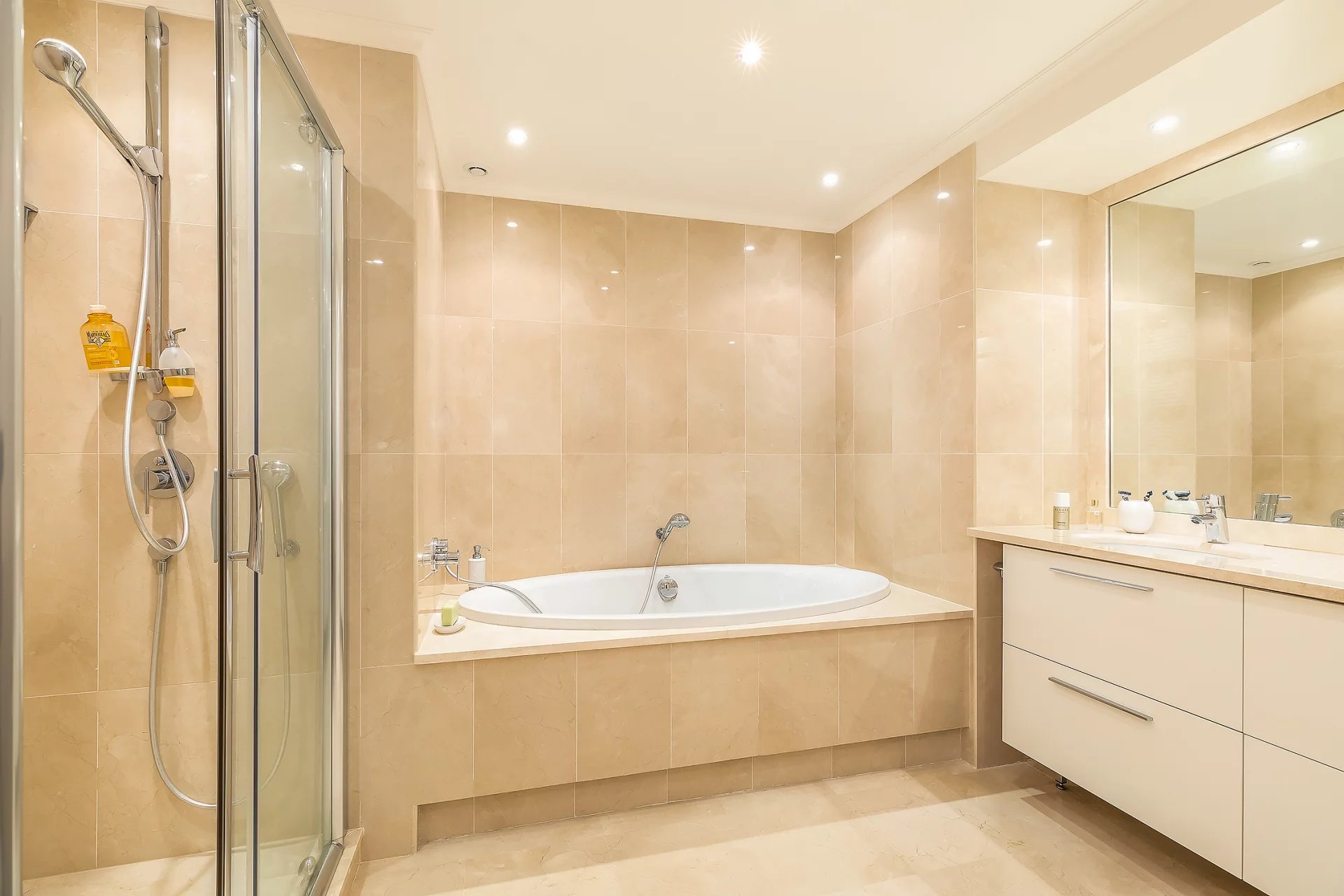 Superbe duplex avec vue mer dans une résidence de prestige à Cannes , Situé au sein d’une des résidences les plus prisées de Cannes, cet élégant appartement de quatre pièces offre un cadre de vie exceptionnel. La copropriété dispose d’une piscine, de courts de tennis, d’une salle de sport et d’un service de gardiennage. Le niveau principal se compose d’un vaste séjour comprenant un salon et un espace bureau, s’ouvrant sur une terrasse offrant une vue panoramique à couper le souffle sur la mer, les îles de Lérins et le Palm Beach. Une cuisine américaine moderne, entièrement équipée, s’accompagne d’un grand espace repas. Des toilettes invités complètent ce niveau. À l’étage inférieur, la suite parentale bénéficie d’un dressing, d’une salle de bain avec douche, double vasque et WC, ainsi que d’un accès à une terrasse face à la mer. Deux autres chambres en suite, chacune avec leur salle d’eau privative, complètent ce bien d’exception.