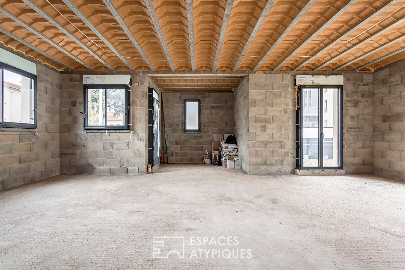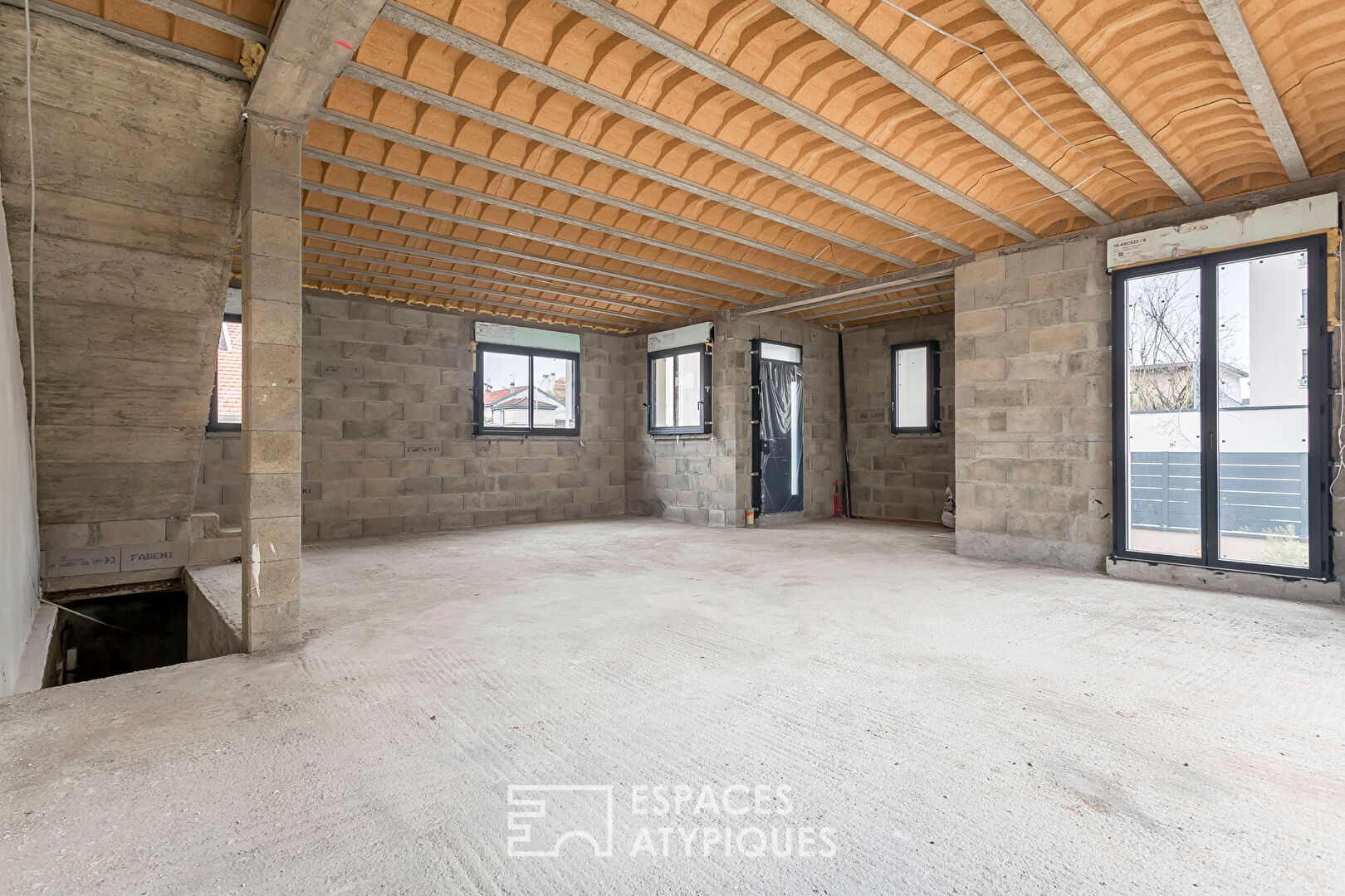 Au coeur du quartier vivant de Montchat à Lyon 3e, à deux pas de la place du château et de son marché, cette maison de 120m2 construite en 2025 est résolument contemporaine. La maison est livrée hors d'eau hors d'air, celle-ci dispose également d'une grande cave non comprise dans les 120m2. Ils faudra prévoir de réaliser le second oeuvre, plusieurs distributions sont possible. Le rez-de-chaussée ouvre sur une belle pièce de vie de 60m2 avec une baie vitrée de 3m de hauteur qui donnent sur la terrasse ainsi que le jardin. Un toilette termine ce niveau. Un escalier invite à la partie nuit agencée de quatre chambres. Quand trois chambres avec rangements se partagent une salle de bains, la quatrième est parentale avec un dressing et une salle d'eau. Toilettes indépendantes de retrouvent également pour ce niveau. En sous sol, la cave permet l'aménagement d'une buanderie. L'extérieur accueil une place de stationnement sécurisée par un portail. Haie végétale et terrasse agrémenteront le jardin. Les travaux à prévoir peuvent être accompagné par un architecte ou une société de travaux pour réaliser le projet de rénovation intérieur. Il est également possible d'acheter cette maison en produit finit avec choix des prestations intérieurs. CLASSE ÉNERGIE : Vierge - CLASSE CLIMAT : Vierge Contact : Joris - 06 68 35 00 43 Joris JEHAN (EI) Agent Commercial - Numéro RSAC : 818 396 939 - Lyon.