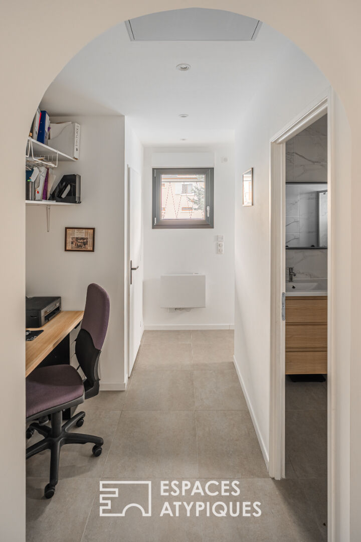 A Saint-Vincent-de-Mercuze, au pied de la Chartreuse, cette maison individuelle développe plusieurs espaces de vie sur un terrain de 953 m², offrant un cadre de vie privilégié et de nombreuses possibilités d'aménagements. Elle se distingue par son organisation en trois volumes : une habitation principale à l'étage, un appartement au RDC, et un studio totalement indépendant. L'étage accueille une pièce de vie lumineuse aux beaux volumes, ouverte sur la nature grâce aux grandes baies vitrées. Le salon, chaleureux avec son poêle, se prolonge vers une cuisine contemporaine fonctionnelle, bénéficiant d'un accès direct à la terrasse. Trois chambres complètent cet espace, dessinant un agencement cohérent et confortable pour la vie familiale. Les prestations modernes : climatisation, huisseries récentes, sols uniformes, renforcent le confort quotidien. Le rez-de-chaussée quant à lui propose un appartement indépendant comprenant une chambre, idéal pour un proche, un projet locatif ou une activité professionnelle. Un studio entièrement équipé s'ajoute à cet ensemble et offre un potentiel rare dans le secteur : hébergement complémentaire, location saisonnière ou espace de travail autonome selon les besoins. Le jardin arboré forme un écrin verdoyant et laisse entrevoir les reliefs de la Chartreuse. Le quartier, calme et résidentiel, profite de la proximité des écoles, commerces et axes de transport permettant de rejoindre rapidement la vallée du Grésivaudan et Grenoble. Un bien modulable, lumineux et situé dans un environnement recherché, parfait pour un projet de vie mêlant sérénité, indépendance et immobilier atypique. Taxe foncière : 1 486 euros CLASSE ENERGIE : C / CLASSE CLIMAT : A. Montant moyen estimé des dépenses annuelles d'énergie pour un usage standard, établi à partir des prix de l'énergie de l'année au 01/01/2021: entre 1 730 euros et 2 400 euros Les informations sur les risques auxquels ce bien est exposé sont disponibles sur le site Géorisques : www.georisques.gouv.fr Contact : Eugénie Hastey (E.I) - 07 81 83 19 83 Agent commercial indépendant RSAC Boulogne Sur Mer 534 839 154 Eugénie HASTEY (EI) Agent Commercial - Numéro RSAC : 534839154 - Boulogne sur Mer.