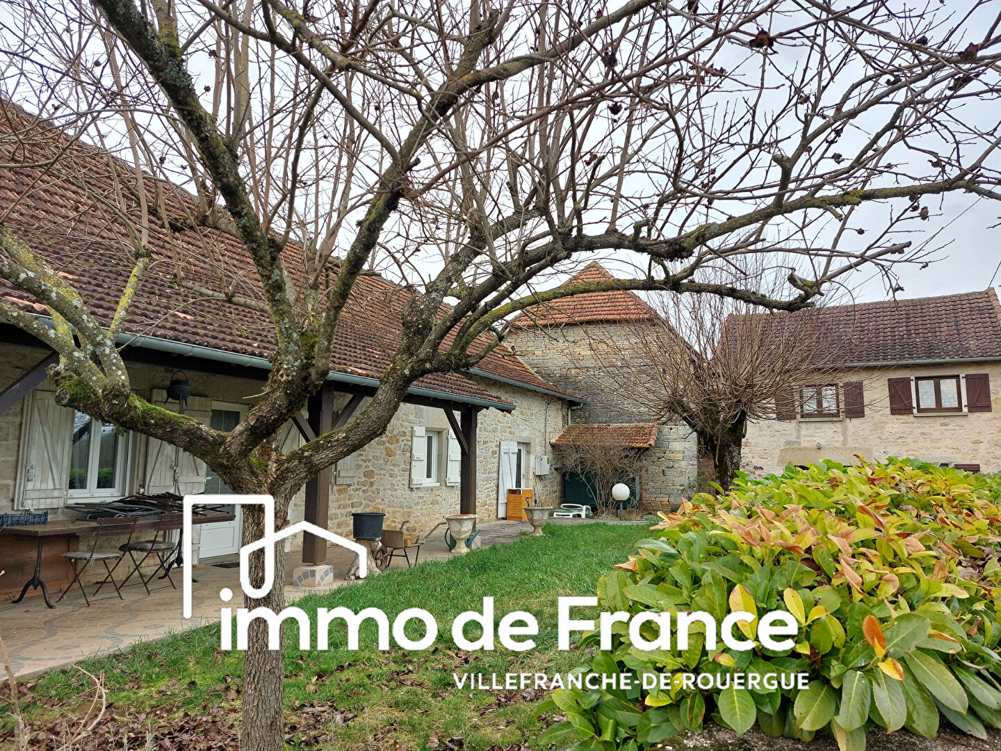 Proche de Villefranche, dans un hameau typique du Rouergue, cet ensemble immobilier se compose de deux maisons de caractère et dépendances, le tout implanté sur terrain plat. La maison principale 92 m² environ type longère se compose de plain-pied d'une entrée sur cuisine 17m², pièce de vie 28m² avec cheminée insert et souillarde, large couloir qui dessert une chambre10.61m², salle d'eau/ WC 6.12m², une autre pièce 11.42m², chaufferie/buanderie, un deuxième WC et une cave. Un gite 48m² environ composé en rez de chaussée d'une pièce de vie 25 m², à l'étage deux chambres de 12 et 9m² et une salle d 'eau/ WC 3m². Chauffage au fuel, eau et électricité communs aux deux logements. Assainissement individuel à mettre aux normes. Un garage double de 55m² environ, une grangette de 37m², un four à pain et un abri pour le bois complètent ce bien, le tout sur terrain clos de 1240m². De l'autre côté de la route du hameau on a un terrain de 2259m² comprenant un poulailler, et un jardin potager. Les maisons sont habitables en l'état mais il faut prévoir des mises aux normes énergétiques, électriques et mise au gout du jour. A voir sans tarder, en exclusivité chez Immo de France Tranier. (6.00 % honoraires TTC à la charge de l'acquéreur.)