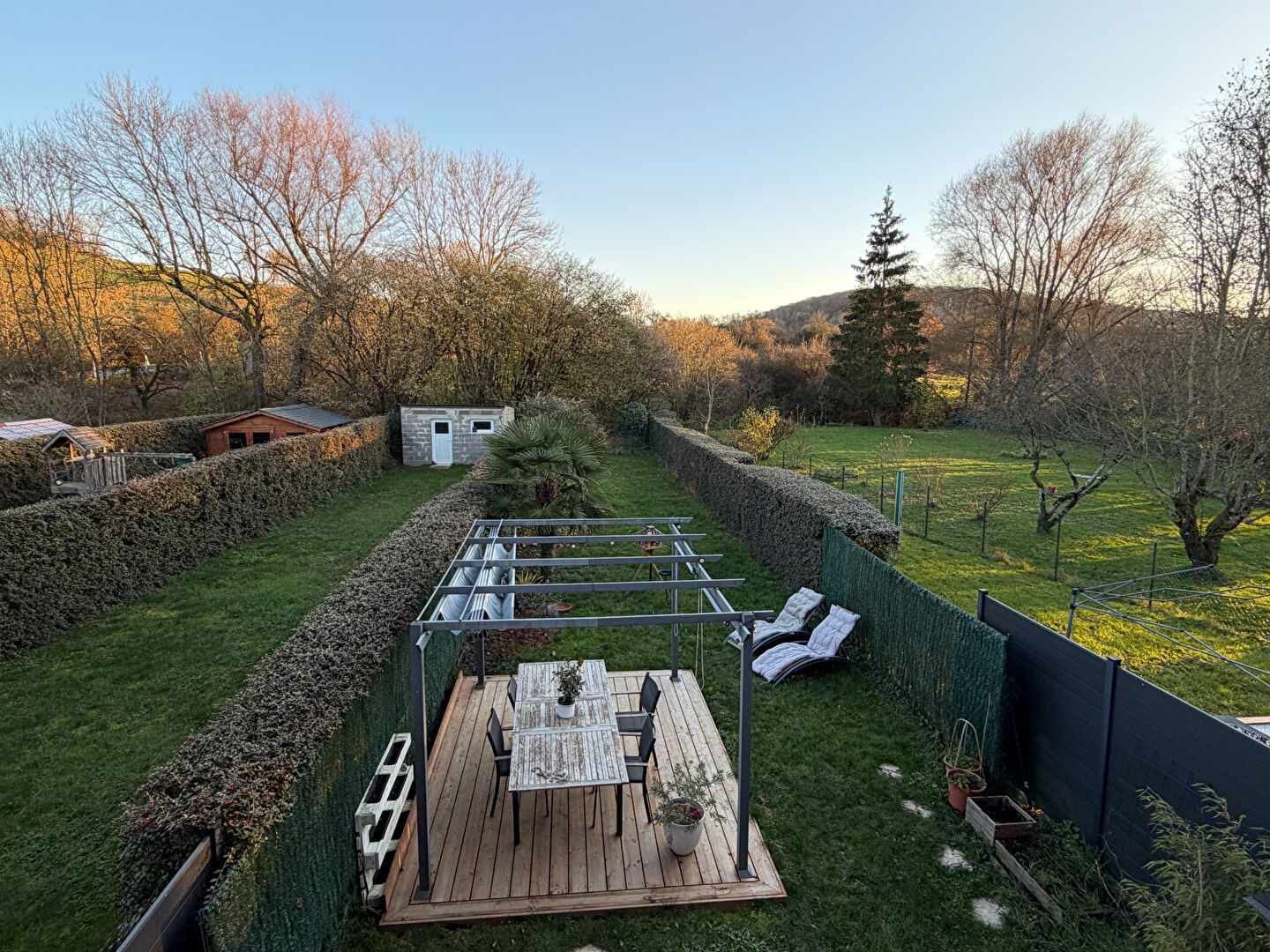 A vendre sur la commune de Beyren-les-Sierck, , cette maison contemporaine édifiée en 2011 se situe au calme d'une impasse, dans un cadre particulièrement agréable où la nature est omniprésente, avec un ruisseau qui borde le fond du jardin. Mitoyenne de part et d'autre, elle offre un confort moderne sans travaux à prévoir et bénéficie d'une cuisine entièrement refaite en 2024 Conformément aux obligations d'information prévues par l'article L125-5 du Code de l'environnement, il convient de préciser que cette propriété se trouve en zone inondable à savoir toutefois, des travaux de protection ont été menés dans ce sens. Le rez-de-chaussée s'ouvre sur un hall d'entrée menant à une vaste pièce de vie d'environ 33 m² baignée de lumière, où la cuisine ouverte et parfaitement équipée se mêle harmonieusement au salon. Deux larges ouvertures, l'une depuis le séjour, l'autre plus petite depuis la cuisine, permettent d'accéder directement à la terrasse et au jardin plat et entièrement clôturé, idéal pour profiter pleinement d'un environnement verdoyant avec une exposition Sud/Est qui permet de profiter d'un ensoleillement du matin jusqu'en fin d'après-midi. Un WC séparé ainsi qu'un garage pouvant accueillir un véhicule complètent ce niveau. A l'étage, un généreux palier distribue trois chambres confortables, dont l'une est dotée d'un balcon privatif. Ce niveau comprend également une salle de bain moderne équipée d'une grande douche et d'un meuble vasque, ainsi qu'un second WC séparé, destiné à l'espace nuit. L'ensemble forme une maison lumineuse, chaleureuse et fonctionnelle, parfaitement entretenue, proposant un cadre de vie naturel, à quelques minutes seulement des commodités essentielles et des axes principaux. Terrain situé en zone inondable avec ruisseau situé à l'arrière de la propriété. Les informations sur les risques auxquels ce bien est exposé sont disponibles sur le site www.georisques.gouv.fr.