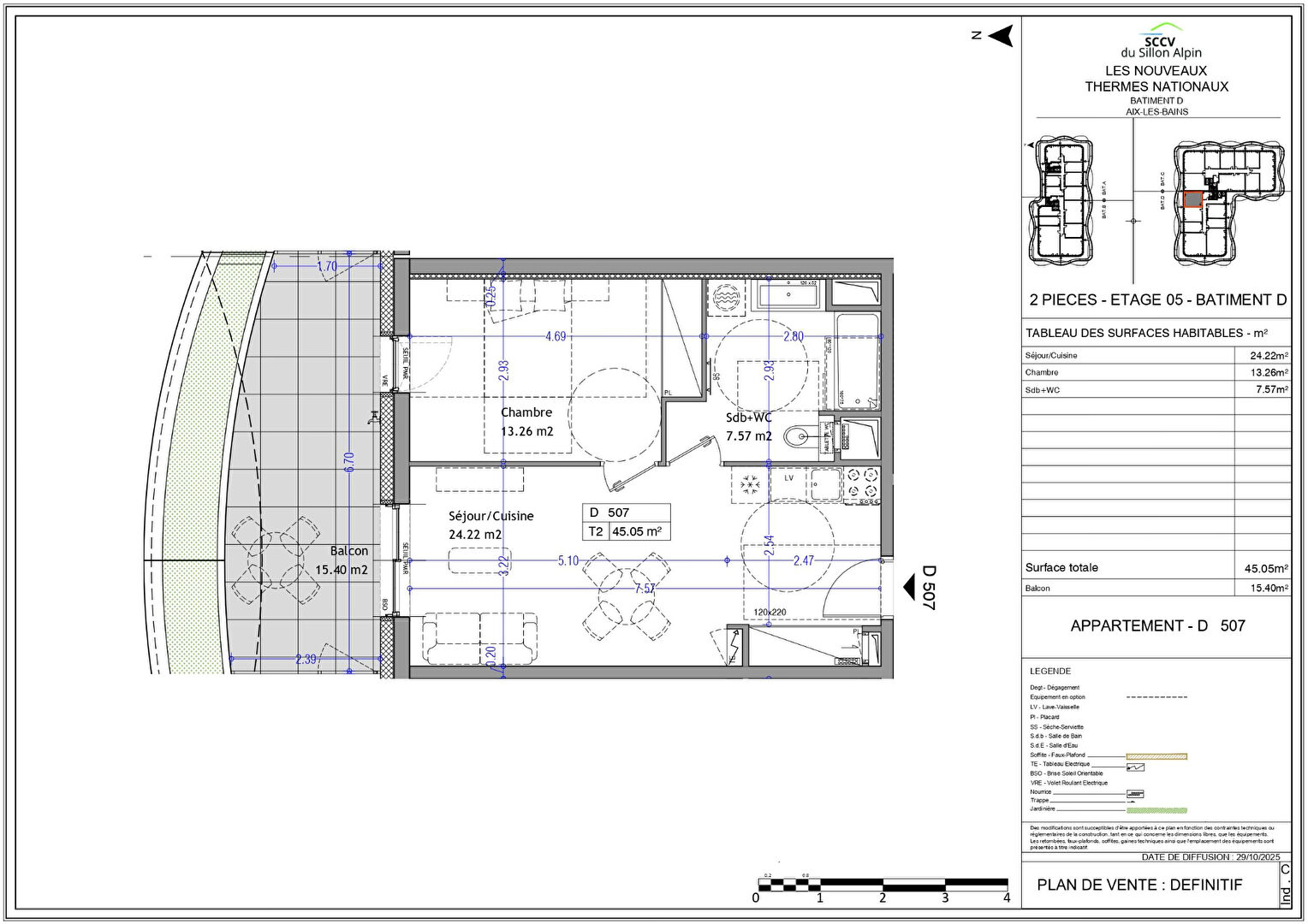 Dans le programme neuf d'exception "Les nouveaux thermes" au coeur d'Aix-les-Bains , appartement T2 de 45 m² en 5ème étage avec terrasse de 15 m², 1 emplacement de parking. Bel ensemble contemporain édifié sur le site des anciens thermes, proposant des appartements du studio au 6 pièces offrant de belles terrasses avec vue, une galerie commerciale, ainsi que bureaux et musée. Livraison fin 2028.