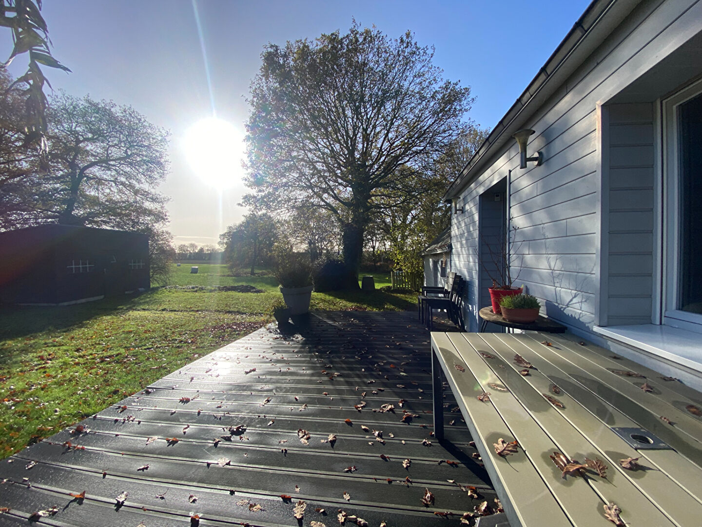 Vous recherchez un cadre paisible, de l'espace et une vue dégagée sur la nature ? BZH Habitation vous présente cette maison de plain-pied, idéalement située en campagne tout en restant à seulement trois minutes du bourg, dans un environnement privilégié pour ceux qui souhaitent allier tranquillité et confort, à 20 minutes de Vannes. Dès l'entrée, vous profitez d'un espace avec rangements intégrés menant à un salon-séjour lumineux agrémenté d'un poêle à bois, puis une cuisine aménagée et équipée, ouverte sur le séjour. La partie nuit se compose de trois chambres de belles tailles avec rangements, d'un WC indépendant et d'une salle d'eau fonctionnelle. Attenant à la maison, un double garage de 48 m² avec grenier offre un volume généreux pour du stockage, un atelier ou tout autre projet. A l'extérieur, le terrain de plus de 1200 m² garantit un réel sentiment d'espace. La terrasse, exposée sur les champs, permet de profiter pleinement des beaux jours . Un grand abri de jardin complète l'ensemble, ainsi qu'un espace potager. Les abords de la maison permettent de stationner plusieurs véhicules en toute simplicité, y compris un camping-car ou un bateau. La maison sera disponible à partir d'octobre 2026. Les informations sur les risques auxquels ce bien est exposé sont disponibles sur le site Géorisques : www.georisques.gouv.fr Toute l'équipe BZH Habitation est à votre disposition pour organiser une visite ou vous fournir davantage de renseignements.
