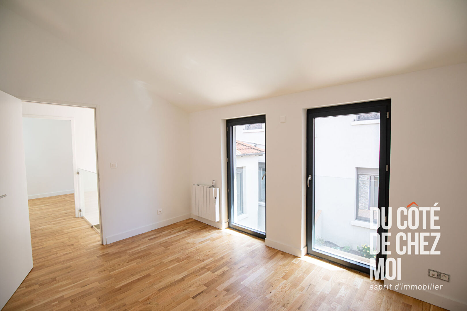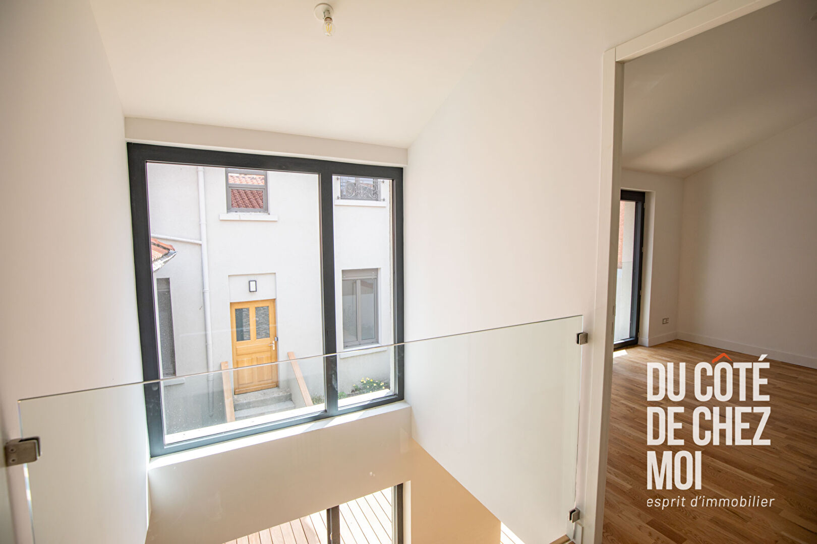Hypercentre - Au calme superbe maison de ville de 82m2 avec cour privative construite en 2023. Luminosité, volume et espace pour cette maison de ville à l'esprit très contemporain offrant au rez-de-chaussée une grande pièce à vivre ouverte sur la cour avec cuisine américaine, parquet et grandes baies vitrées jouant sur un effet dedans dehors, une chambre avec accès indépendant, une salle d'eau avec douche à l'italienne et wc. A l'étage, un dégagement avec puits de lumières, deux chambres dont l'une avec dressing et salle d'eau privative. Chauffage individuel électrique avec radiateurs à inertie. Huisseries double vitrage. Cuisine aménagée. Une cave. Terrasse en bois. Interphone. Digicode. Petite copropriété de cinq lots. Possibilité d'un garage en sus. Surface utile 82 m2 - Surface Carrez : 79.57 m2. A proximité immédiate de toutes commodités (commerces, Gare Sncf, Arrêts TCL avec futur T10). Statut juridique de la copropriété. Nombre de lots : 6 dont 5 logements. Montant annuel moyen des charges de copropriété : 0 euros. Les honoraires sont à la charge du vendeur. Copropriété de 6 lots - dont 5 lots habitation.(Pas de procédure en cours).