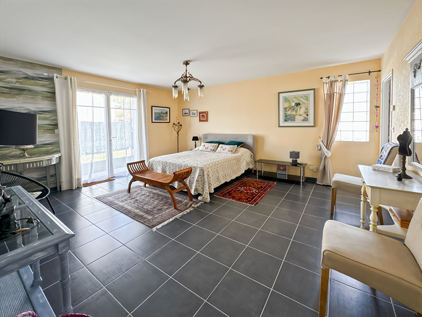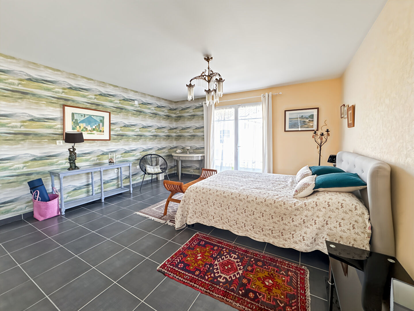 Située à proximité immédiate de toutes les commodités, venez découvrir cette jolie maison de plain-pied, parfaitement entretenue. Elle vous accueille par une agréable pièce de vie lumineuse, agrémentée d'un poêle à bois, idéal pour vos douces soirées d'hiver. Cette pièce s'ouvre sur une cuisine aménagée et équipée, ainsi que sur le jardin, offrant un véritable prolongement de l'espace de vie. Côté nuit, un couloir dessert trois premières chambres, une salle d'eau et un WC indépendant. A l'extrémité de la maison, vous profiterez d'une vaste suite parentale d'environ 38 m2 comprenant une salle d'eau avec WC et un dressing. Dotée de sa propre entrée extérieure, cette suite peut facilement accueillir un bureau, un cabinet professionnel, ou être louée indépendamment du reste de la maison. Cette maison allie confort, praticité et modularité, elle saura répondre à tous les critères de vie d'une famille. N'attendez plus et contactez-nous pour organiser une visite ! (5.00 % honoraires TTC à la charge de l'acquéreur.)