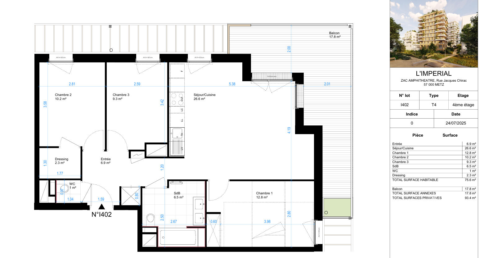 Venez découvrir ce nouveau programme neuf ! Appartement 4 pièces 75.58 m2 avec 3 chambres et un balcon de 17.8 m². Nichée au coeur du dynamique quartier de l'Amphithéâtre, à deux pas du centre commercial MUSE et à seulement 5 minutes à pied de la gare SNCF de Metz, cette résidence contemporaine rend hommage à l'élégance intemporelle de la ville, à son patrimoine et à son art de vivre. Choisir L'Impérial, c'est faire le choix d'une résidence d'exception signée Lingenheld Immobilier, acteur reconnu pour la qualité de ses réalisations et la pérennité de ses engagements. Isolation renforcée, performances énergétiques conformes à la réglementation RE2020, matériaux nobles et confort d'usage. Tout ici reflète la rigueur d'un bâtisseur et la sensibilité d'un créateur. Plus qu'un lieu de vie, L'Impérial est une promesse celle d'un quotidien serein, dans une résidence élégante qui s'inscrit durablement dans le patrimoine messin. Pour plus de renseignements contacter l'agence L'ADRESSE METZ au 03.87.32.15.15, sur metz@ladresse.immo ou directement en agence 5 rue des Messageries 57000 METZ Votre agence immobilière L'ADRESSE Metz : ACHAT VENTE NEUF LOCATION GESTION d'appartements et maisons. Copropriété de 59 lots (Pas de procédure en cours).
