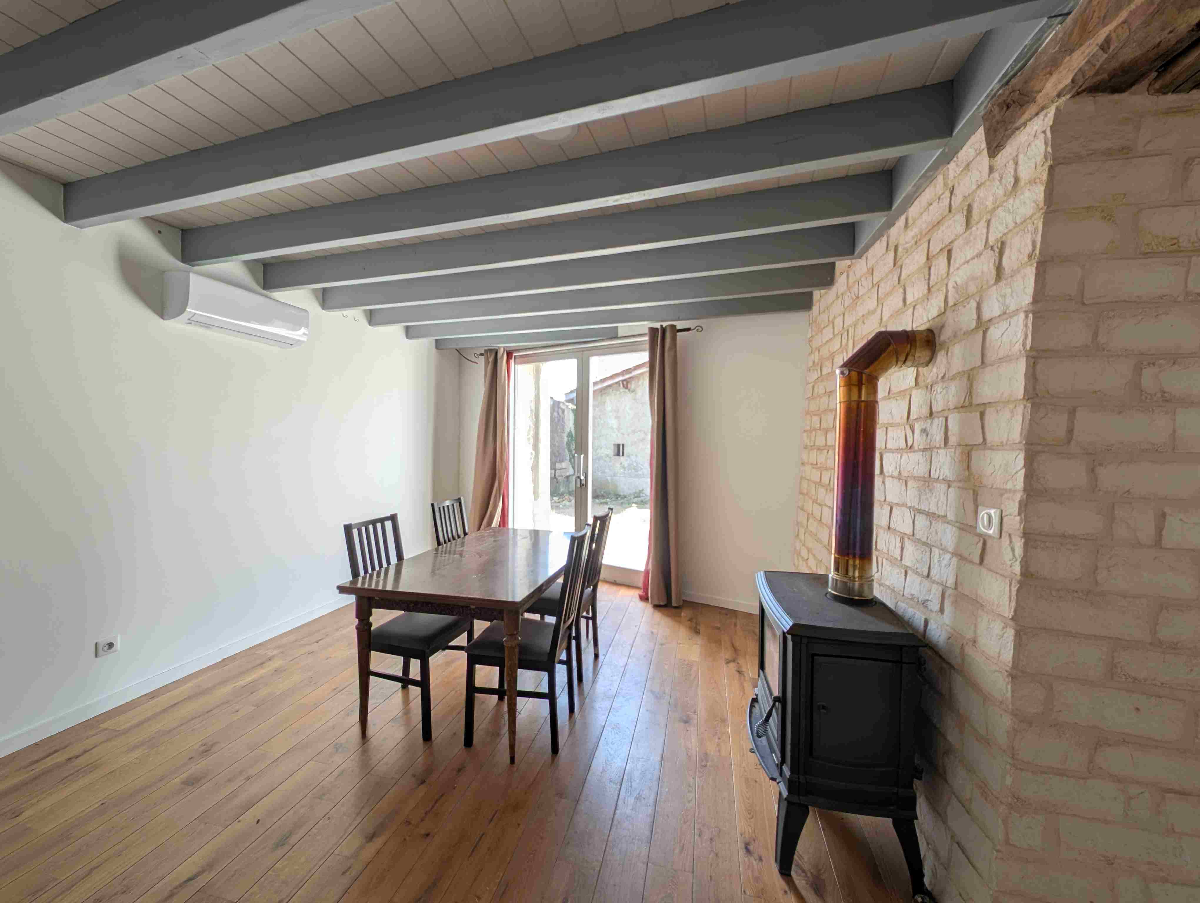 Chauffage : Pompe à chaleur Air/Air de 2025 pour le RDC. Un poêle à bois de 2011, et des radiateurs à l'étage.