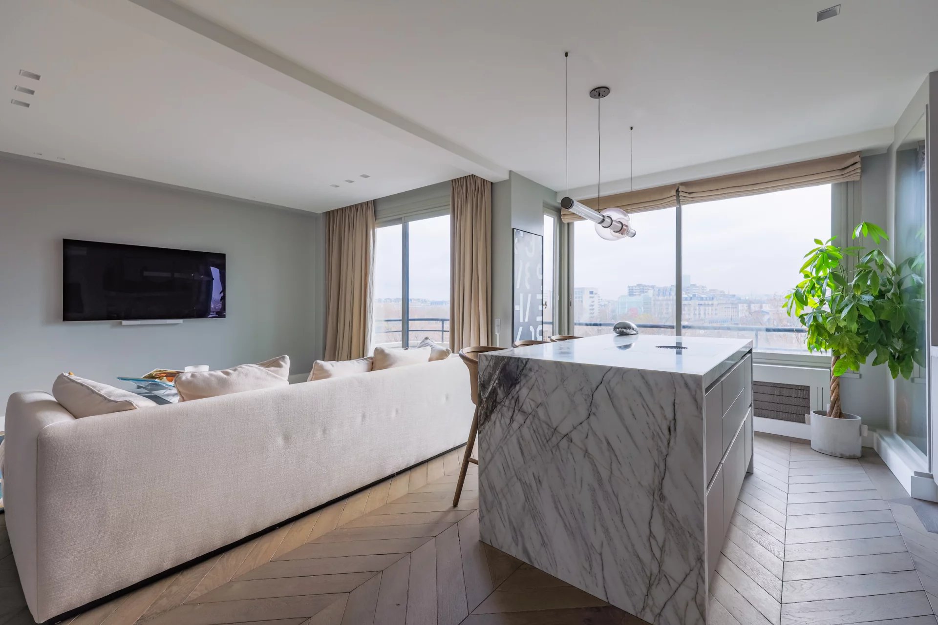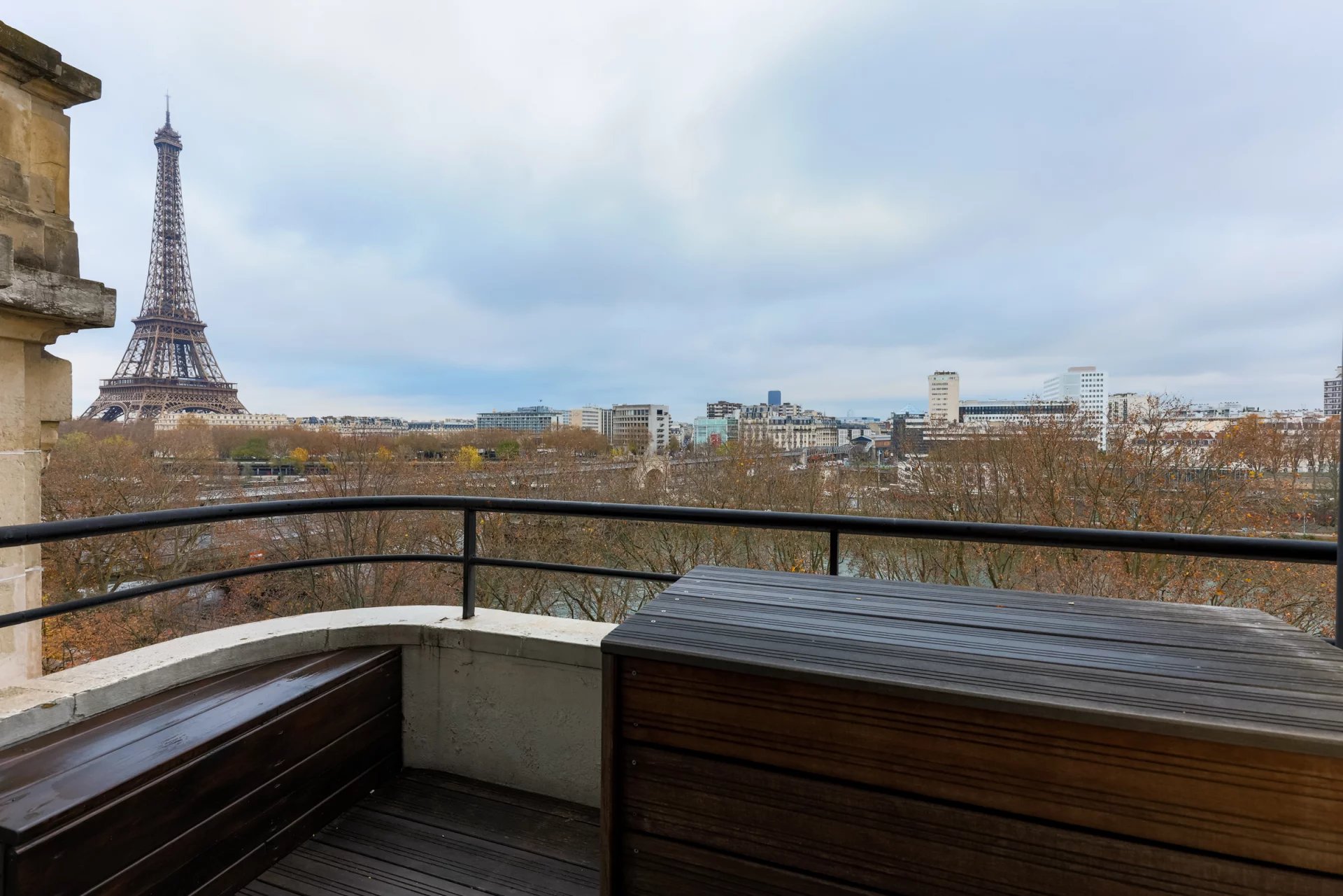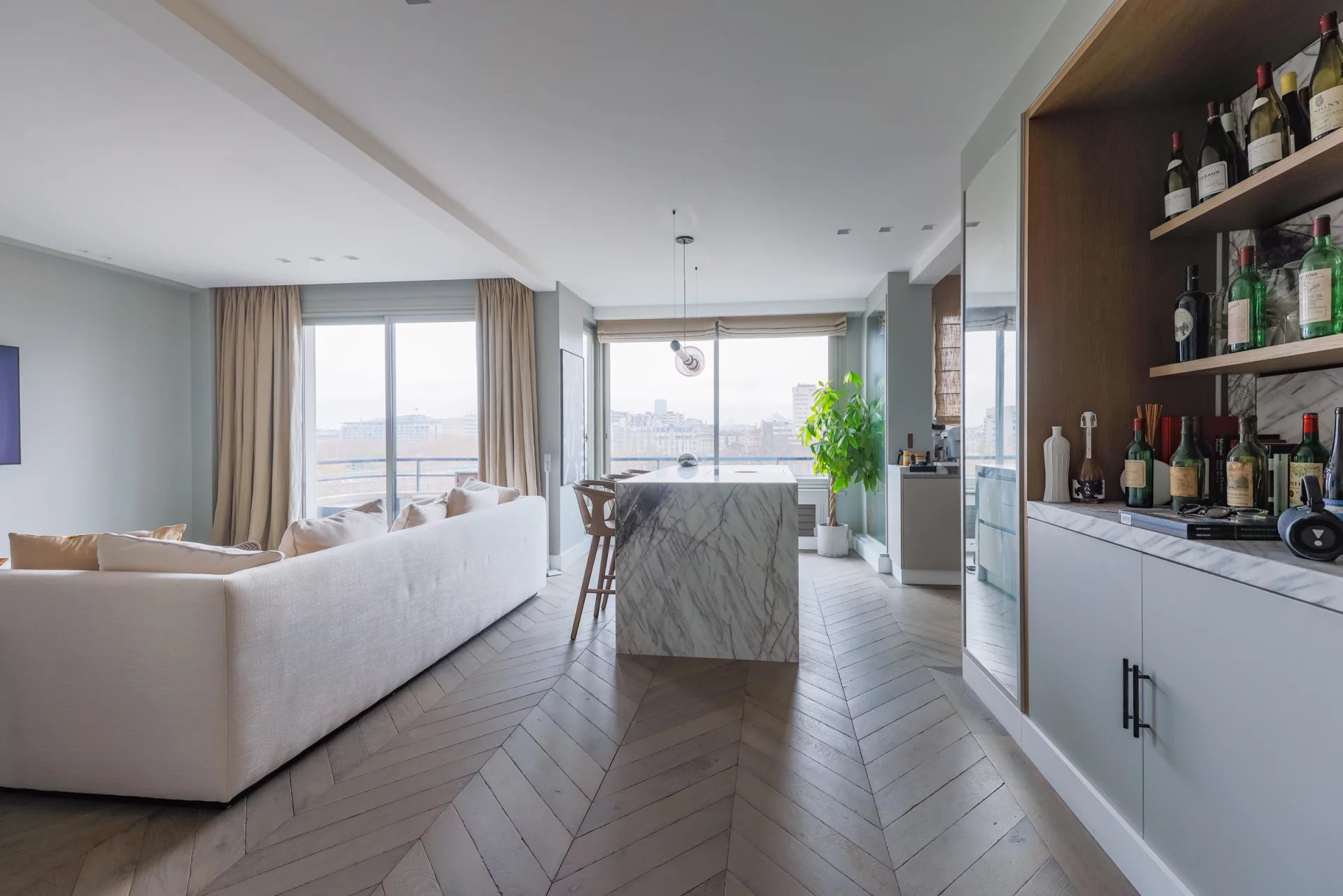 Situé au 6ᵉ étage avec ascenseur d’un immeuble de standing avec gardien, cet appartement de 81 m² offre une vue spectaculaire sur la Tour Eiffel depuis son balcon. Il se compose d’un double séjour lumineux, d’une cuisine américaine équipée, d’une chambre, et d’une salle de bains. Un bien rare sur le marché, alliant prestige, luminosité et adresse d’exception sur l’avenue du Président Kennedy.