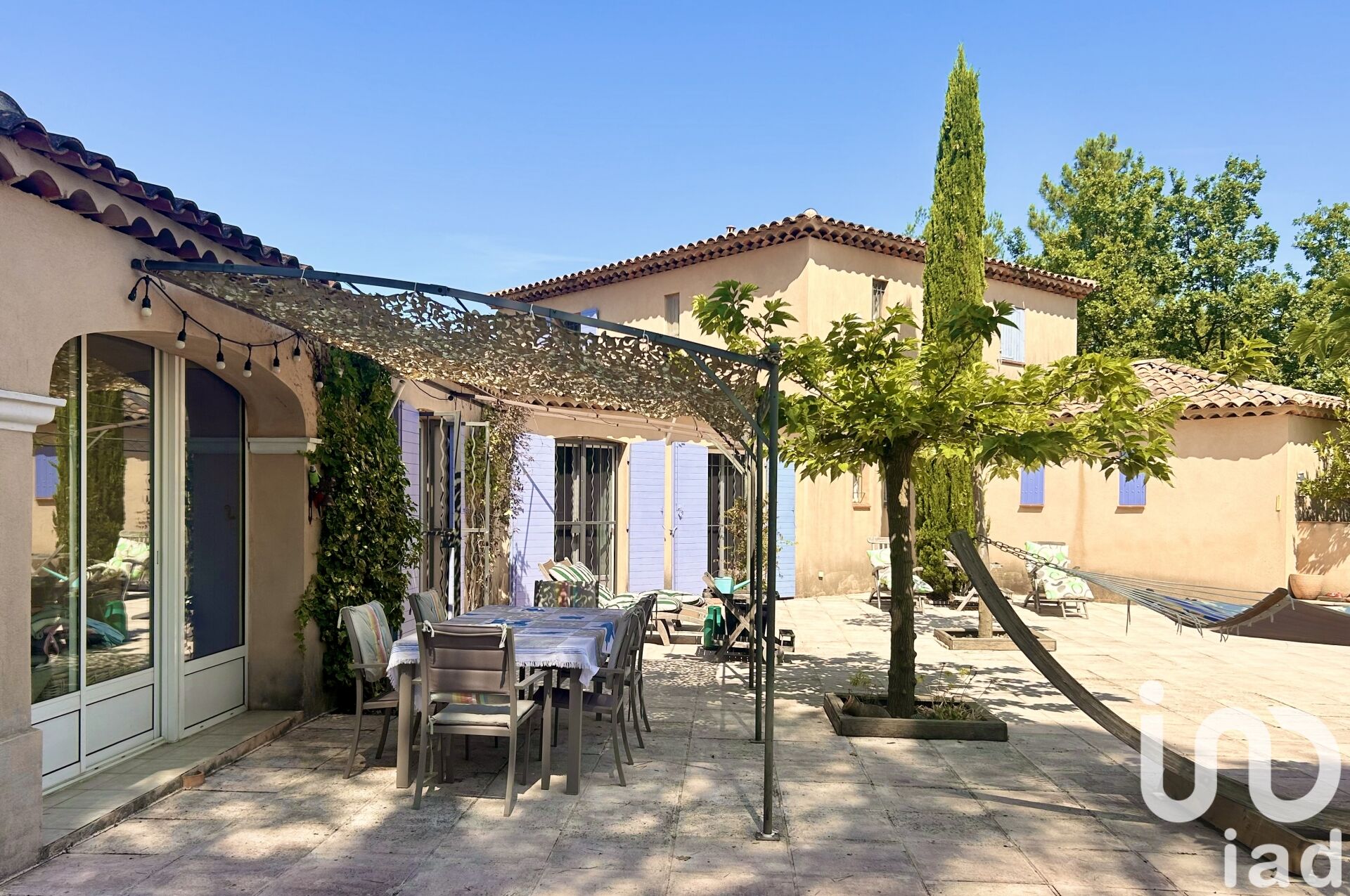 Iad France - Laurence BARON vous propose : Au cOEur de la Provence verte, j'ai le plaisir de vous proposer à la vente cette belle propriété située en position dominante, de 3 hectares environ, qui comprend une maison élevée d'un étage de type 6, de 2000, de 230 m². Elle comprend une grande pièce de vie traversante de 50 m² qui fait office de salon - salle à manger, équipée de son poêle à granulés, une cuisine aménagée et équipée de 20 m² qui profite d'un cellier attenant de 6 m², et d'un accès direct à une véranda entièrement fermée de 15 m². Le coin nuit comprend une suite parentale de 35 m² aménagée de son dressing, et de sa salle de bain, qui comprend une baignoire et une douche + WC, une deuxième suite parentale de 20 m², aménagée sa salle d'eau, une pièce de 15 m², qui peut faire office de chambre d'appoint aménagée également de sa salle d'eau, et une buanderie de 15 m², d'accès direct de l'extérieur. L 'étage comprend un dégagement qui dessert un espace de 8 m² qui peut faire office de bureau, une chambre de 13,46 m², aménagée de son placard mural, une chambre de 14 m² qui profite d'une vue sur la Sainte Victoire, une salle de bain et WC séparés. Terrasse de plus de 100 m² d'accès direct de l'ensemble des pièces de vie de la maison et à l'espace piscine également. Le terrain d'une superficie de 26790 m², arboré et aménagé, comprend une allée, un espace de stationnement et de retournement, un espace piscine aménagé de sa piscine de 11x7 à débordement, aménagée de sa pompe à chaleur, de rideau électrique Piscine intégré. son jacuzzi, de nombreux espaces de repos, une partie du terrain en restanques entretenues, et toute une partie boisée qui entoure le périmètre clôturé de 5000 m² environ. Prestations du bien : Huisseries en Aluminium, et bois double vitrage, volets bois + grilles en fer forgé de sécurité, + moustiquaires, portail électrique + visiophone + alarme. La maison est raccordée à un forage et d'un assainissement non collectif, une fosse septique. Située au calme absolu tout en étant à 5mn des commerces et des commodités du village. Aucun vis-à-vis sans être isolé. Véritable havre de paix, une propriété rare à la vente dans un cadre d'exception. Je reste à votre disposition pour échanger sur ce bien. Honoraires d'agence à la charge du vendeur. Information d'affichage énergétique sur ce bien : classe ENERGIE D indice 199 et classe CLIMAT B indice 6. Les informations sur les risques auxquels ce bien est exposé, y compris l'obligation légale de débroussaillement, sont disponibles sur le site Géorisques : http://www.georisques.gouv.fr.La présente annonce immobilière a été rédigée sous la responsabilité éditoriale de Mme Laurence BARON mandataire indépendant en immobilier (sans détention de fonds), agent commercial de la SAS I@D France immatriculé au RSAC de DRAGUIGNAN sous le numéro 882366032, titulaire de la carte de démarchage immobilier pour le compte de la société I@D France SAS.Informations LOI ALUR : Honoraires charge vendeur. (gedeon_6727_32213214)